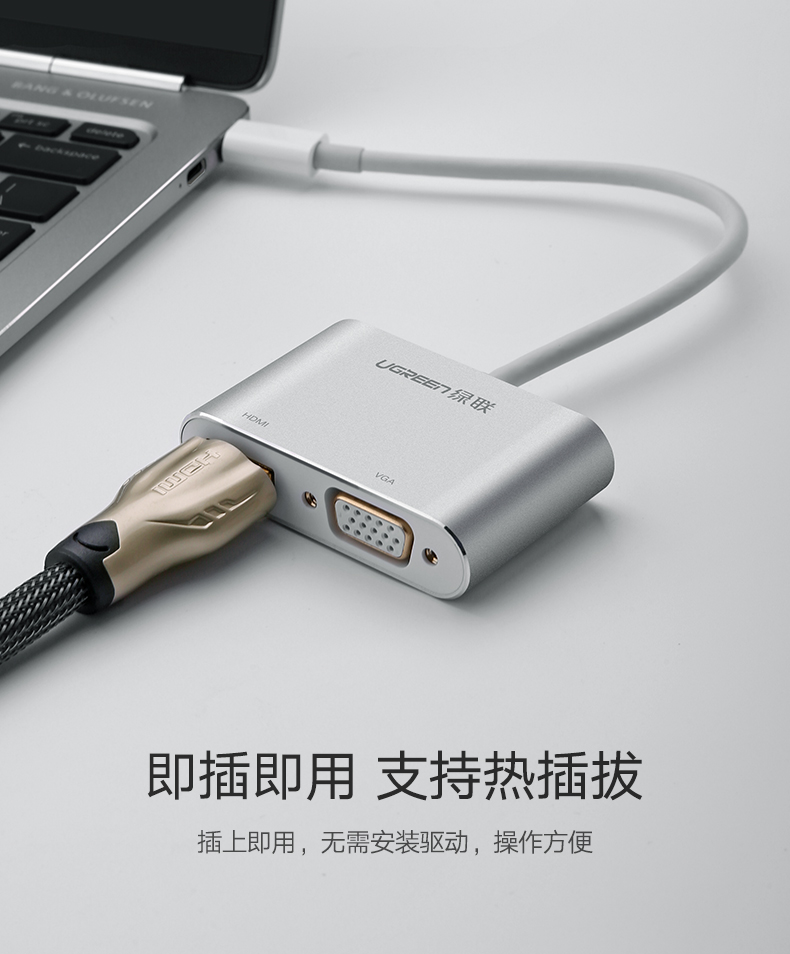 綠聯(lián) CM162 Type-C轉(zhuǎn)HDMI+VGA 轉(zhuǎn)換器鋁殼款器電腦筆記本電視投影 鋁殼銀 灰色 單個(gè)裝