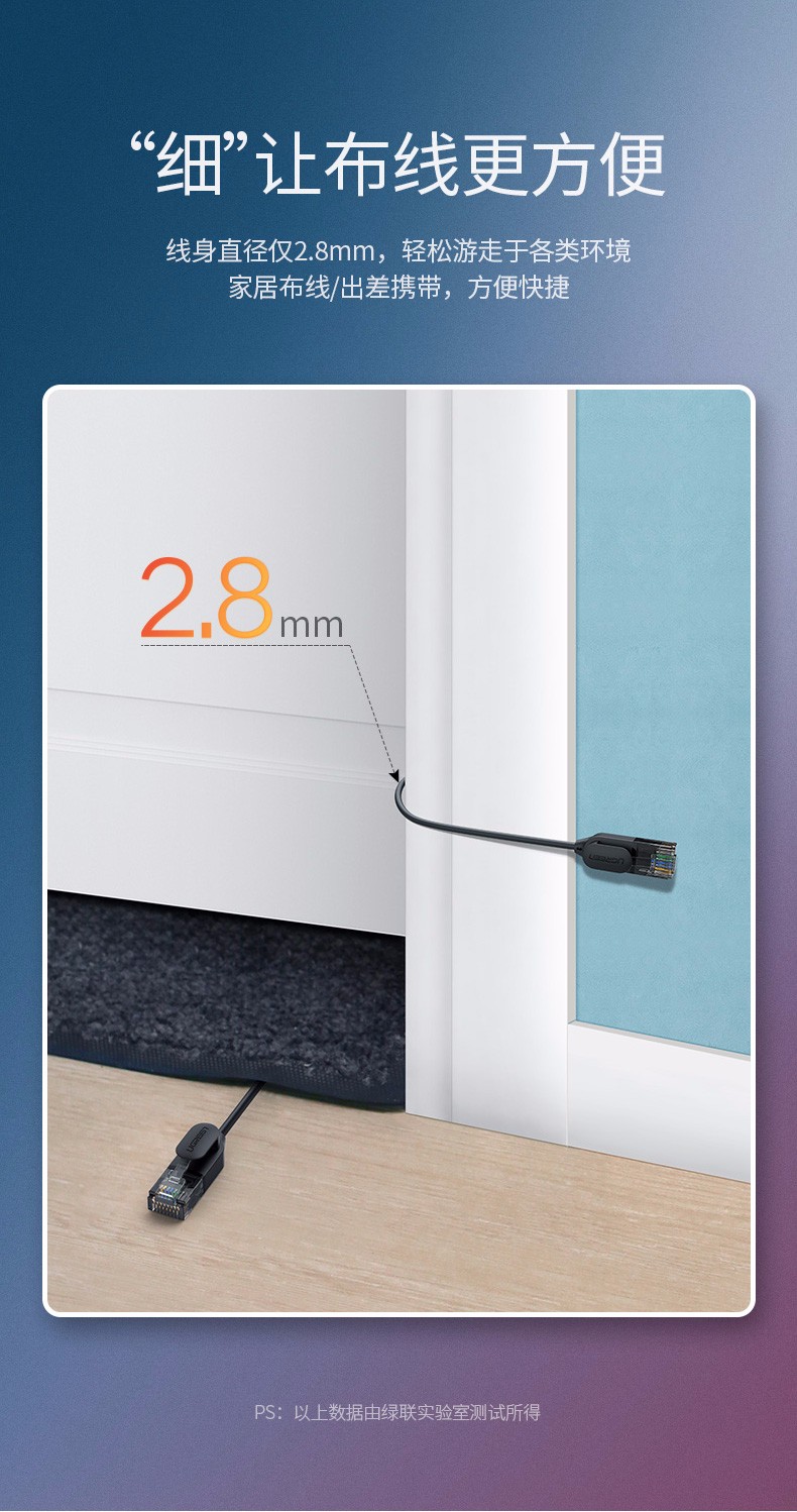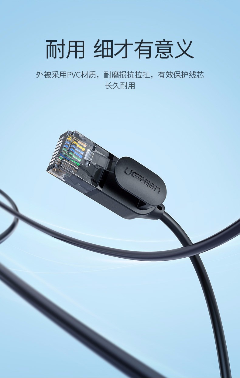 綠聯(lián)網(wǎng)線 NW122 超六類萬兆網(wǎng)線細線 CAT6A類純銅鍍金八芯雙絞非屏蔽網(wǎng)絡跳線 2米 單位:根