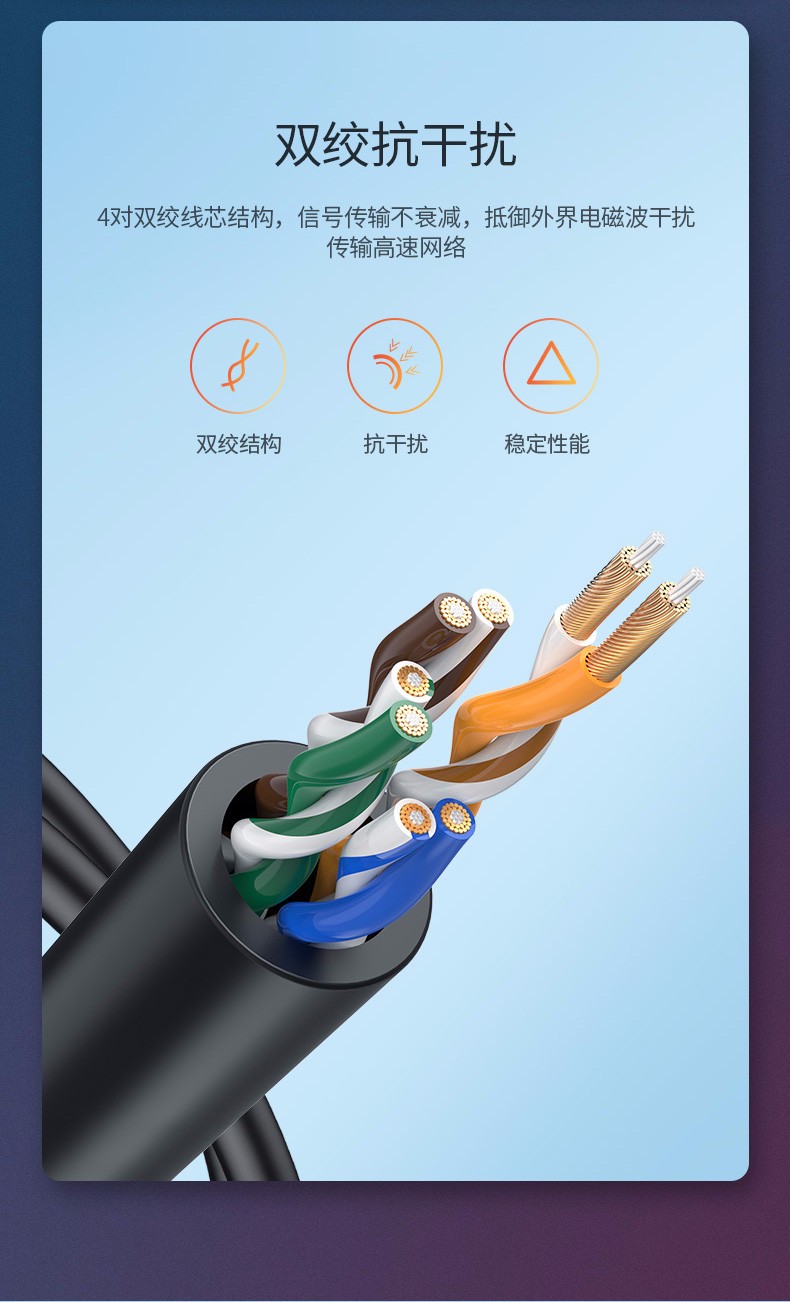 綠聯(lián)網(wǎng)線 NW122 超六類萬(wàn)兆網(wǎng)線細(xì)線 CAT6A類純銅鍍金八芯雙絞非屏蔽網(wǎng)絡(luò)跳線 10米 單位:根