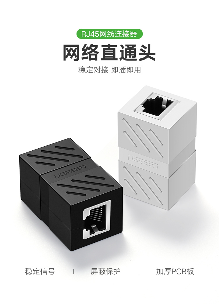綠聯(lián)網(wǎng)線(xiàn)延長(zhǎng)器對(duì)接頭 NW114 網(wǎng)線(xiàn)延長(zhǎng)器對(duì)接頭 RJ45網(wǎng)線(xiàn)直通頭 帶屏蔽 白色 5個(gè)裝 單位:包
