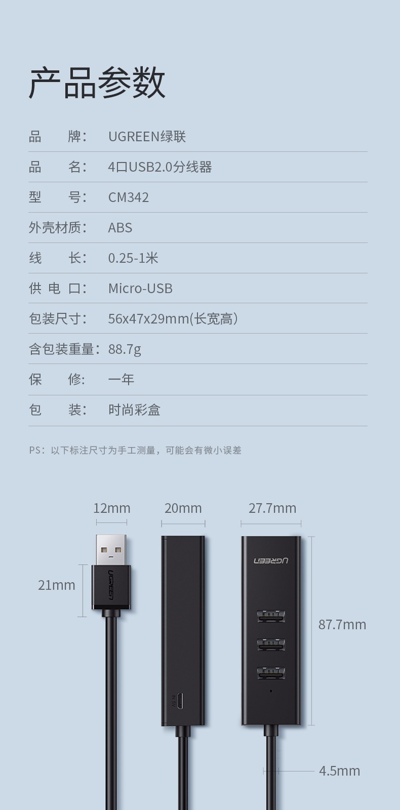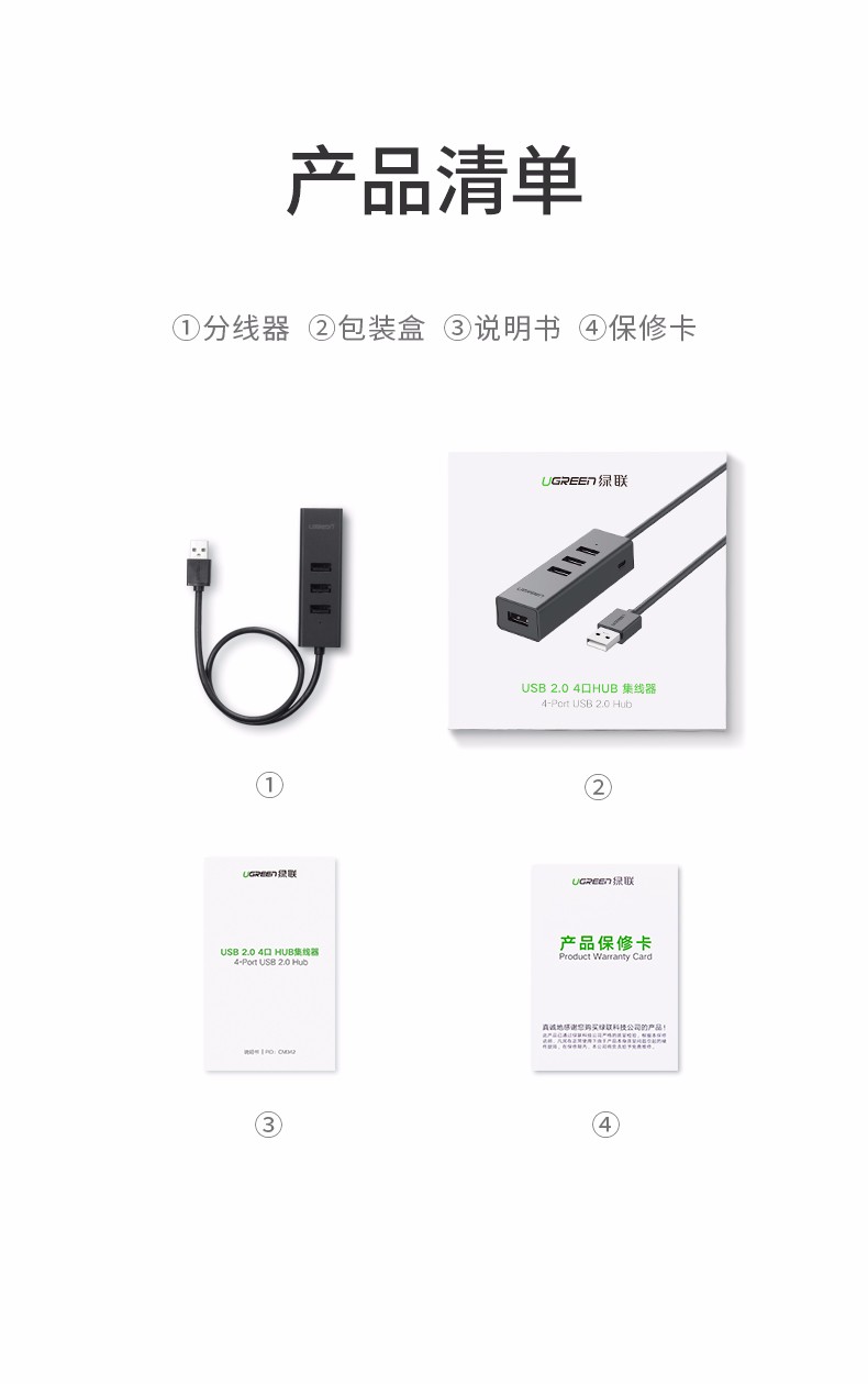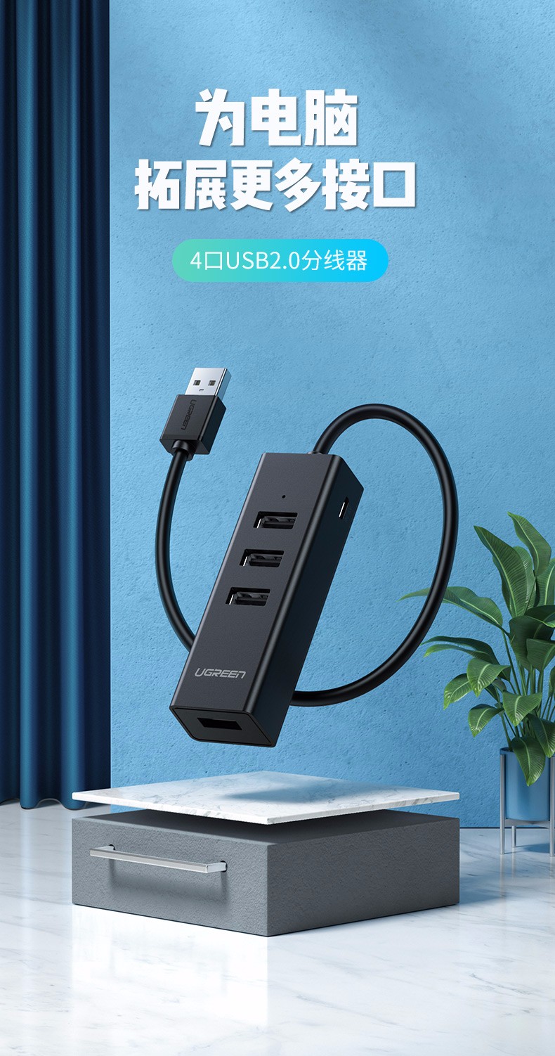 綠聯(lián)分線器 CM342 USB2.0一拖四多功能分線器 1米 黑色 單位:個(gè)