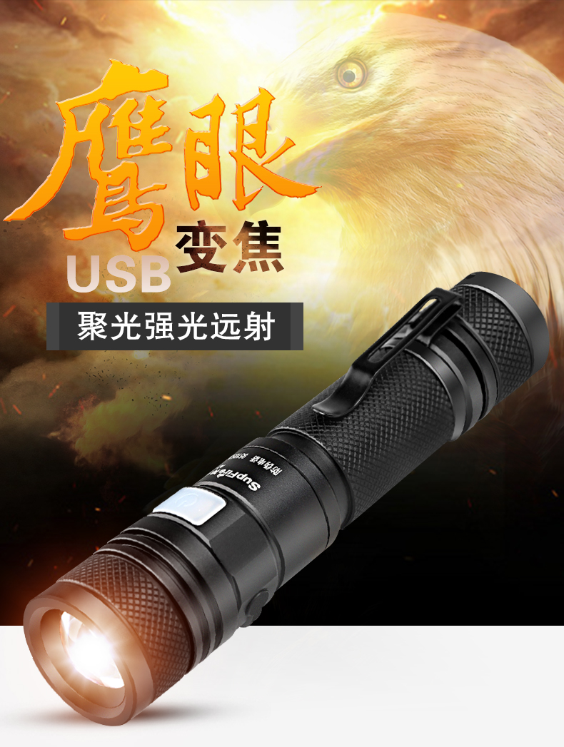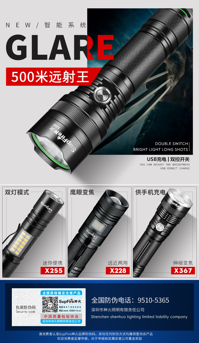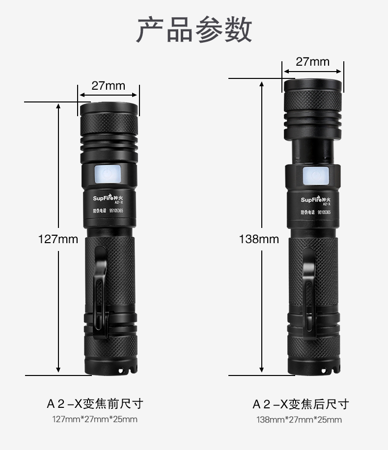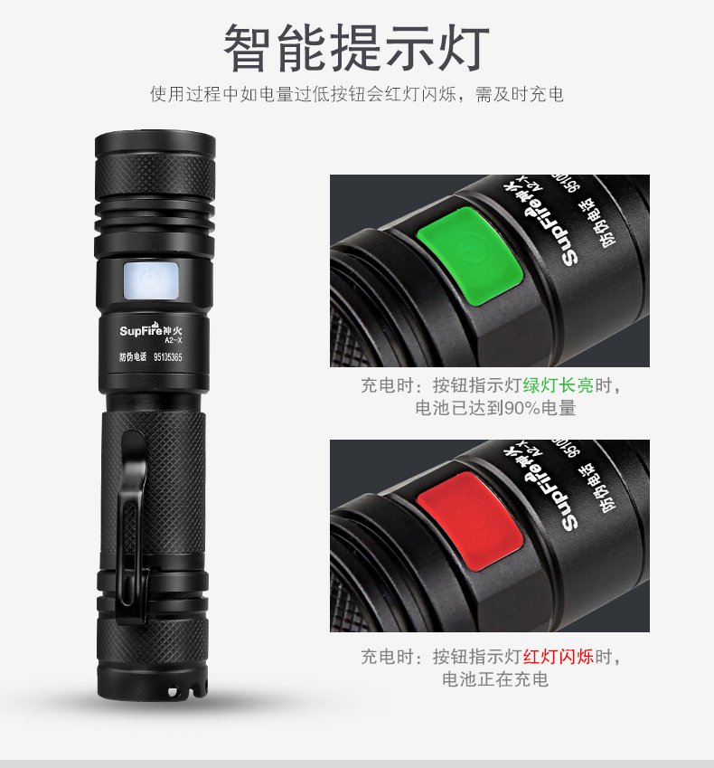 神火強(qiáng)光手電筒 A2-X 變焦可調(diào)焦USB充電式家用戶外遠(yuǎn)射迷你戰(zhàn)術(shù)防身 單位:個(gè)