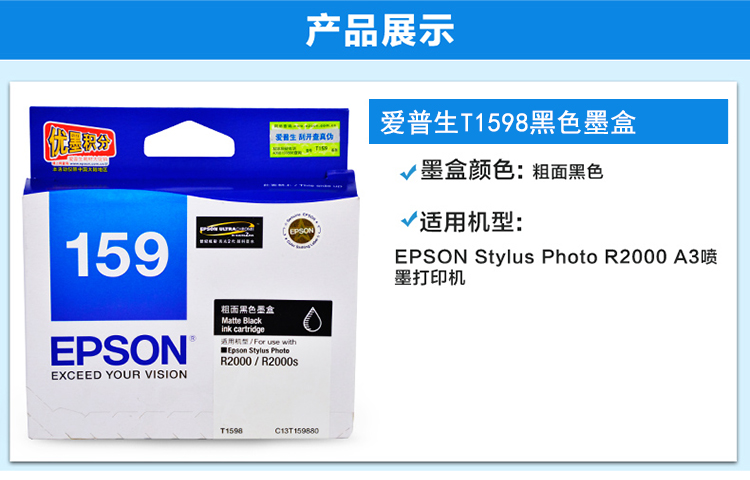愛普生墨盒 T1591 照片黑色墨盒 適合R2000 R2000S打印機 單位:支