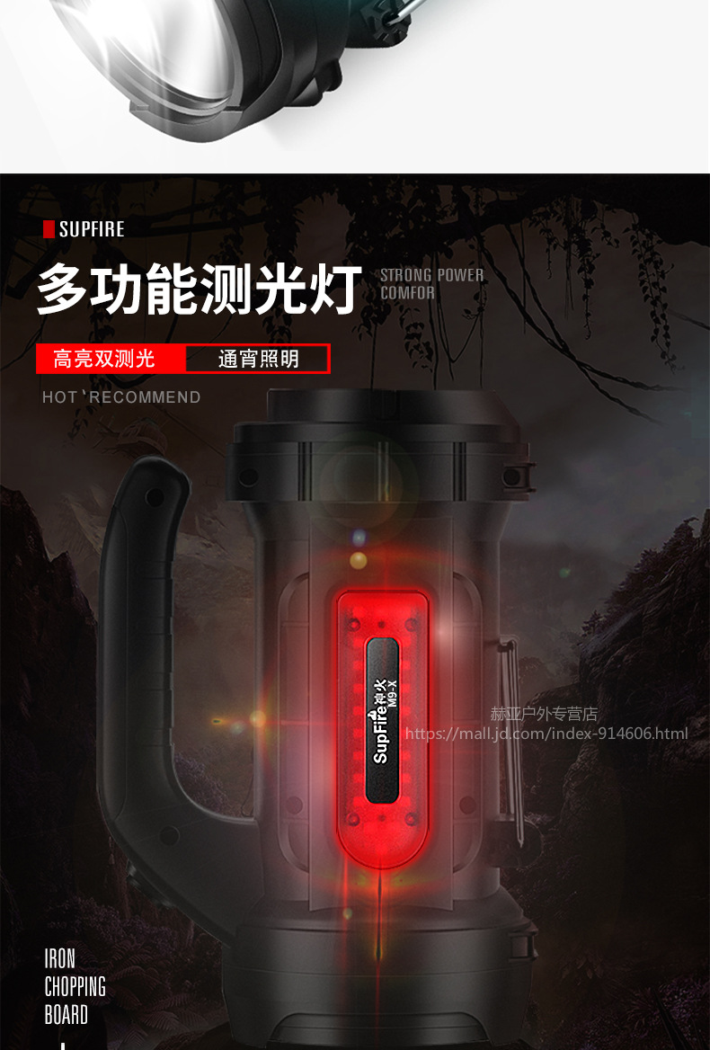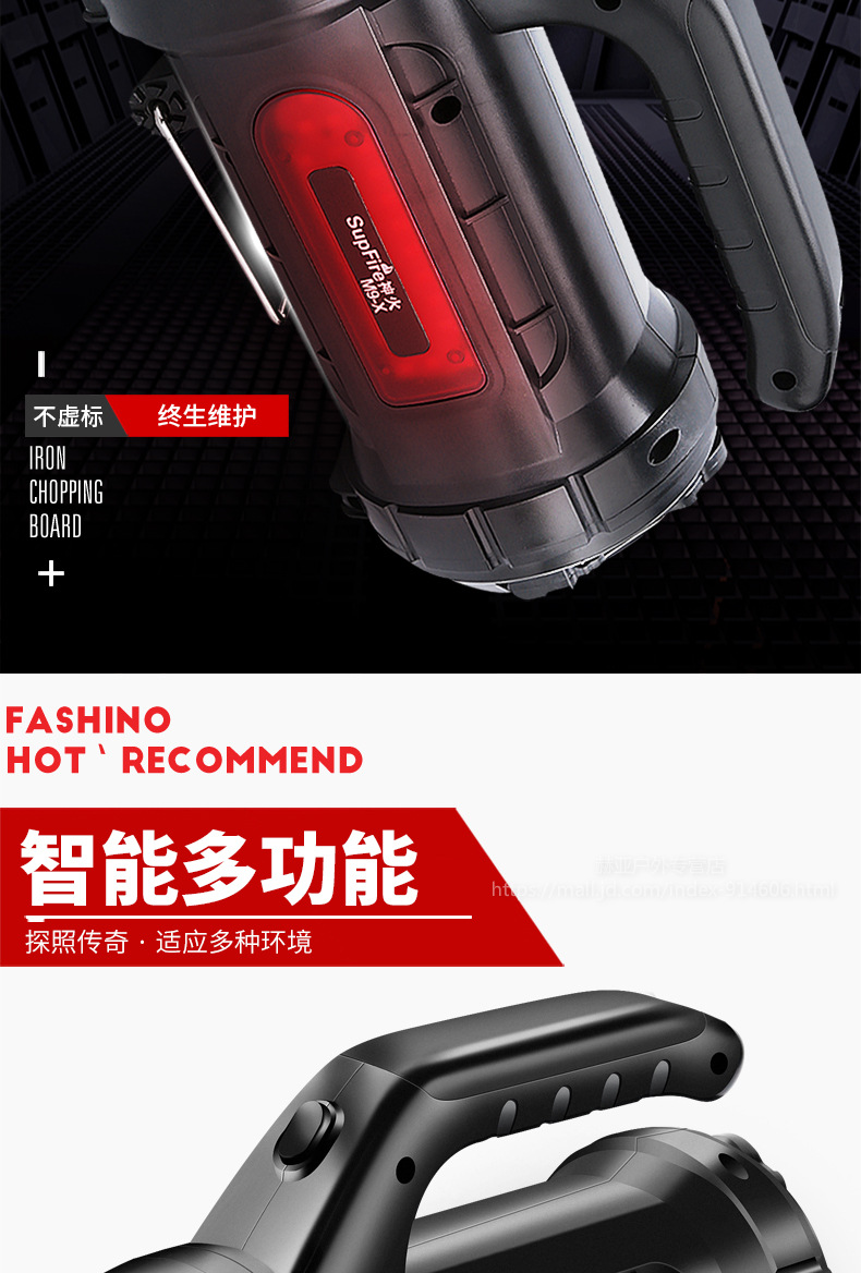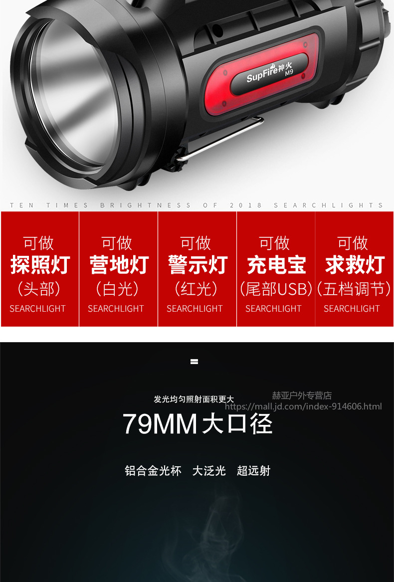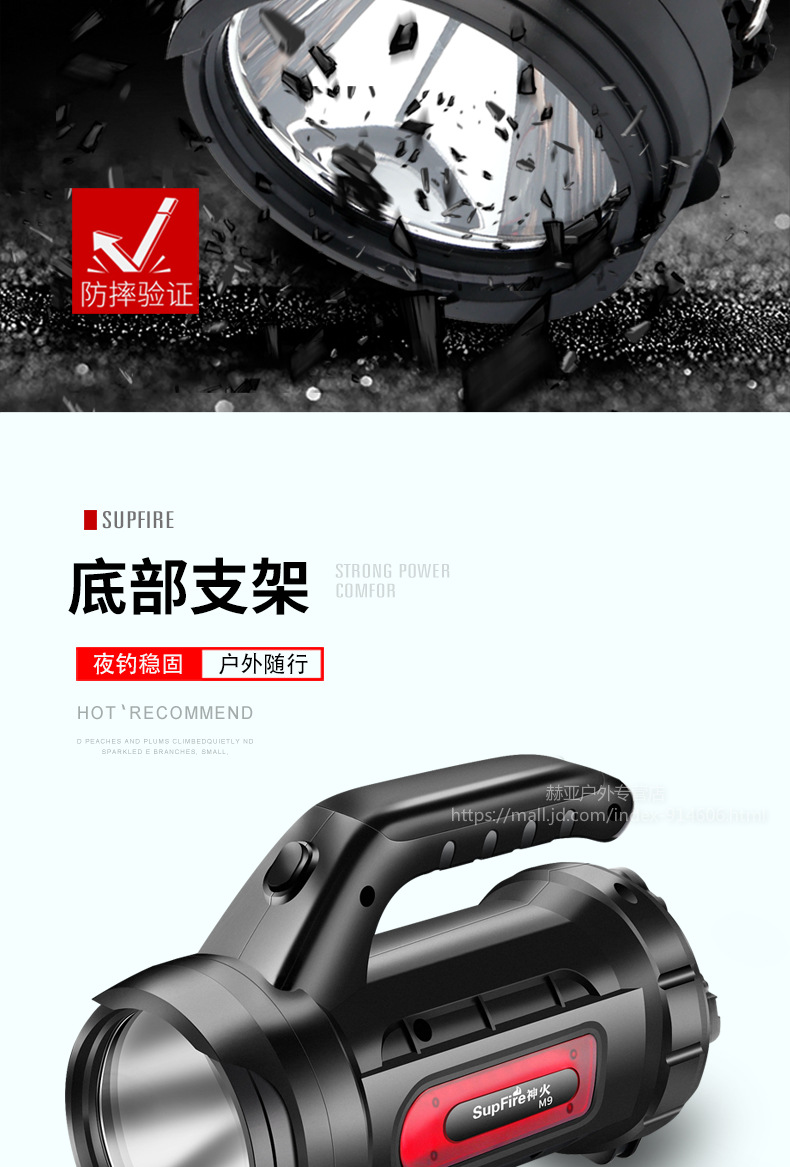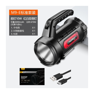 神火強(qiáng)光手電筒 M9 探照燈可充電led多功能超亮遠(yuǎn)射手提燈戶外 黑色 單位:個