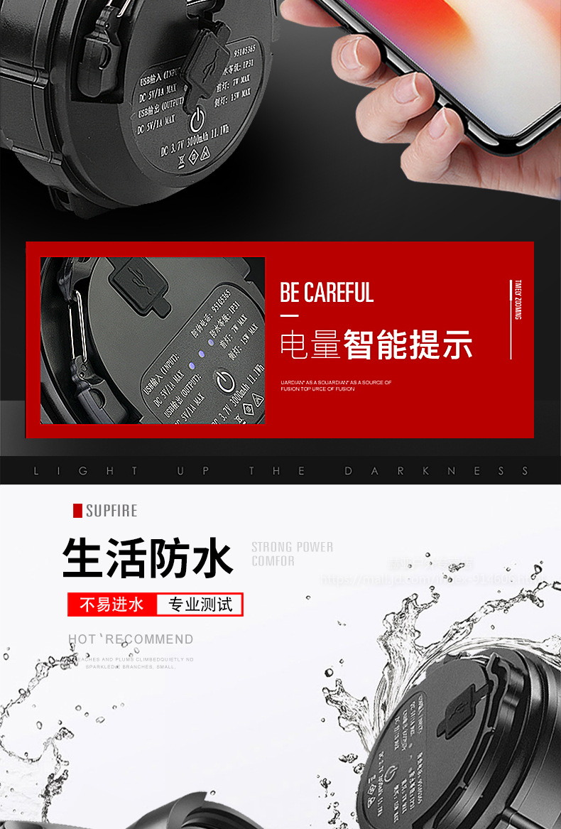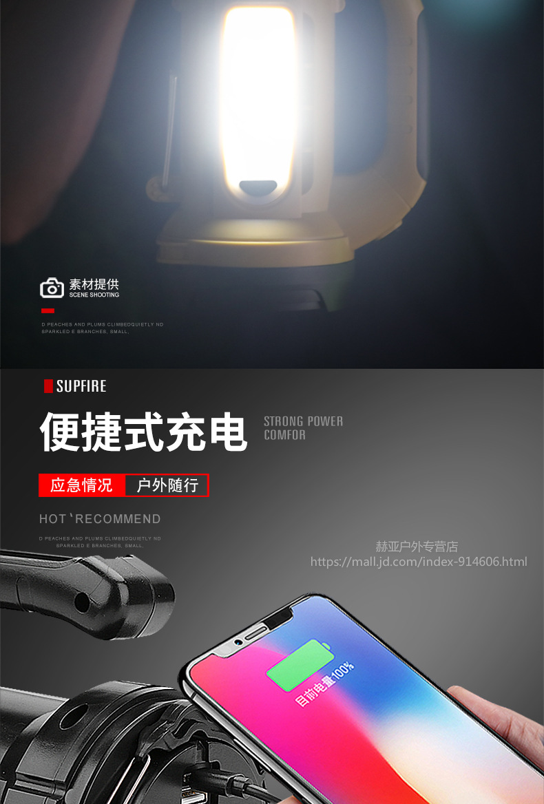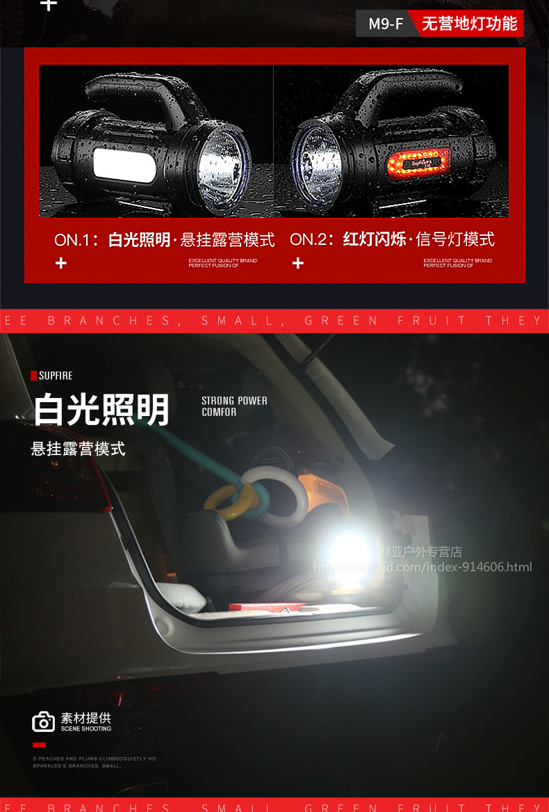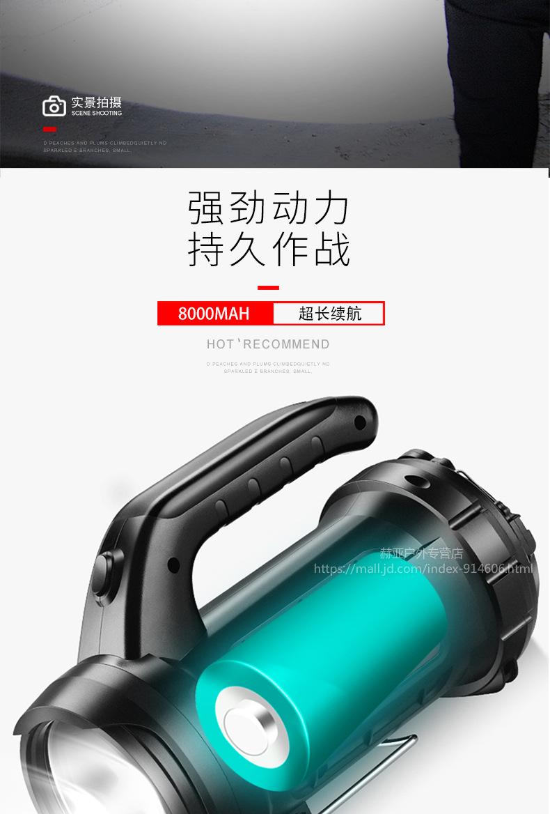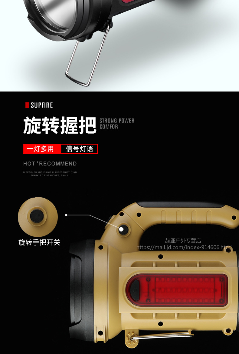 神火強(qiáng)光手電筒 M9 探照燈可充電led多功能超亮遠(yuǎn)射手提燈戶外 黑色 單位:個