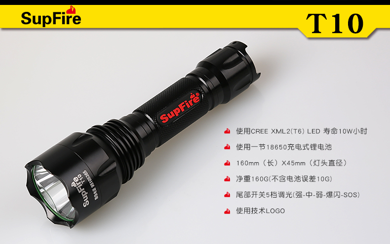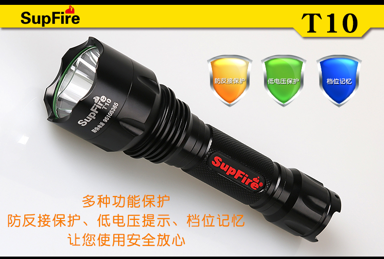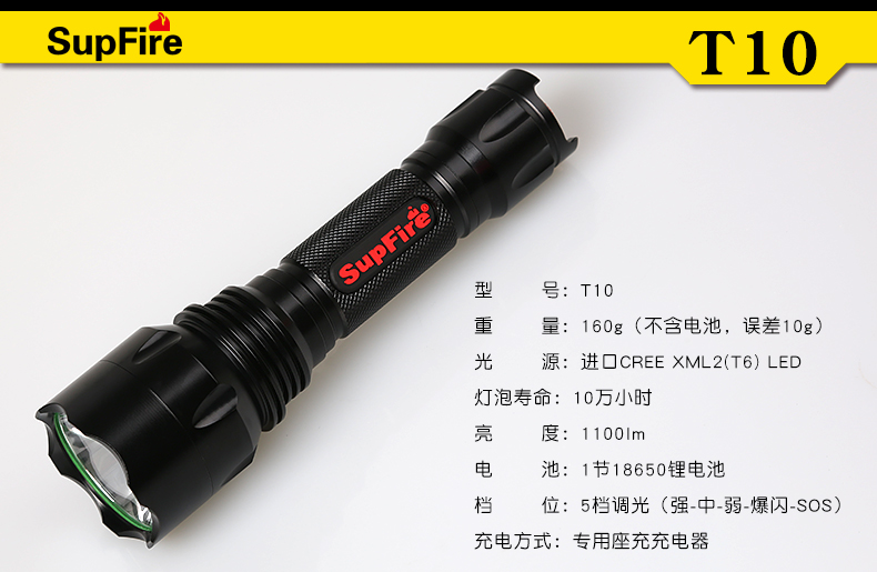 神火強光手電筒 T10 戶外充電防水遠(yuǎn)射手電黃白藍(lán)通用戶外騎行500遠(yuǎn)射 單位:個