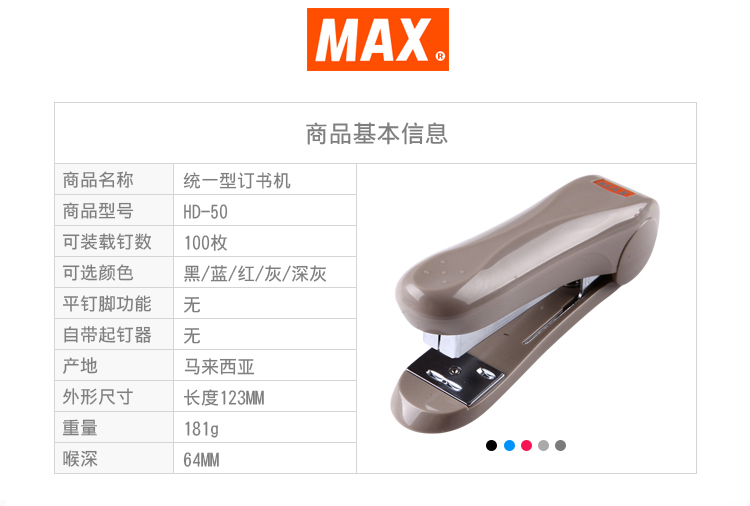 美克司訂書機 HD-50 中型省力訂書機可旋轉訂板正反裝訂 黑色 單位:個
