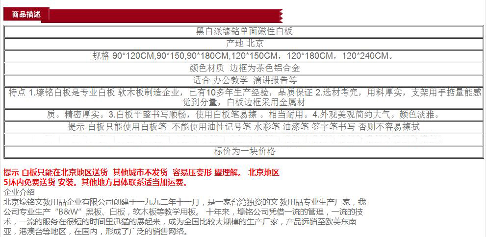 壕銘白板 501 90*120磁性白板單面 單位:塊
