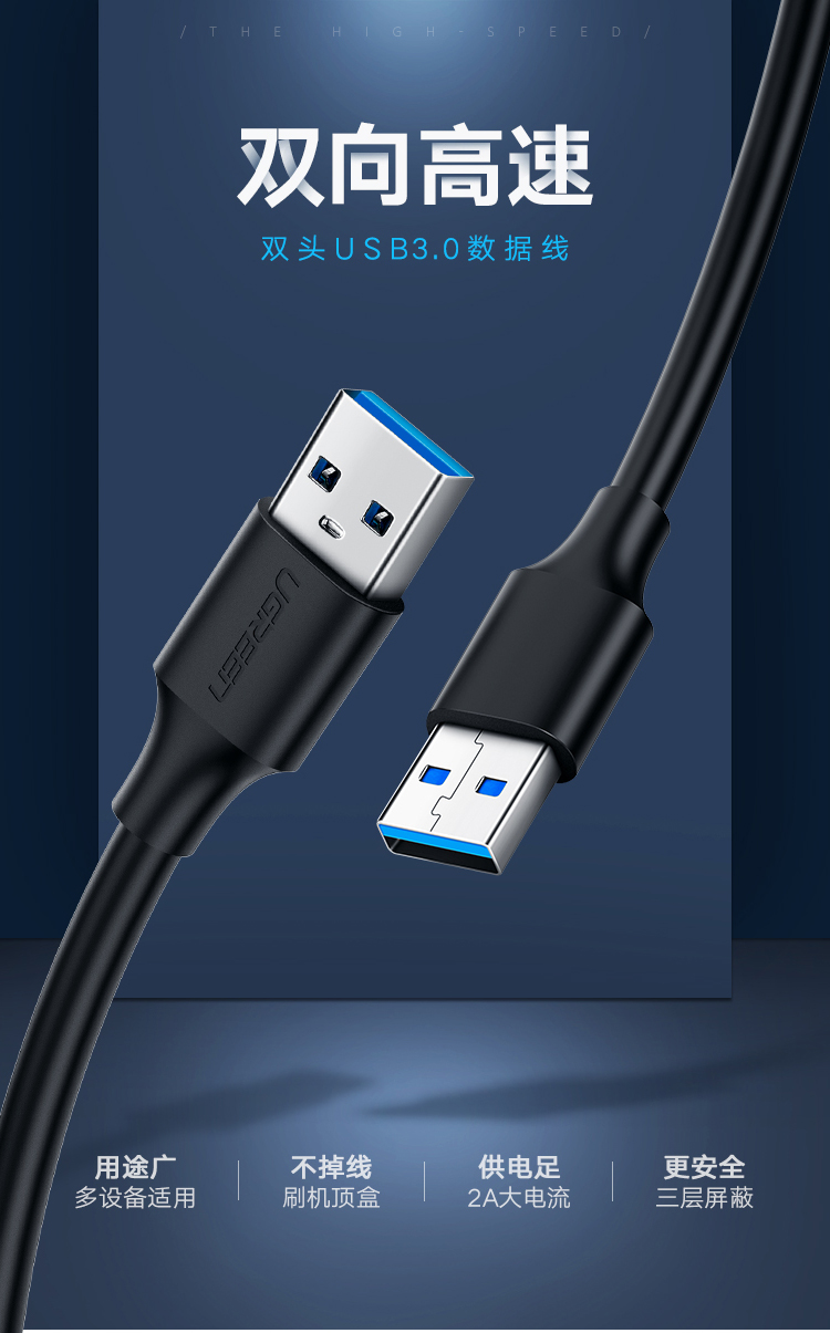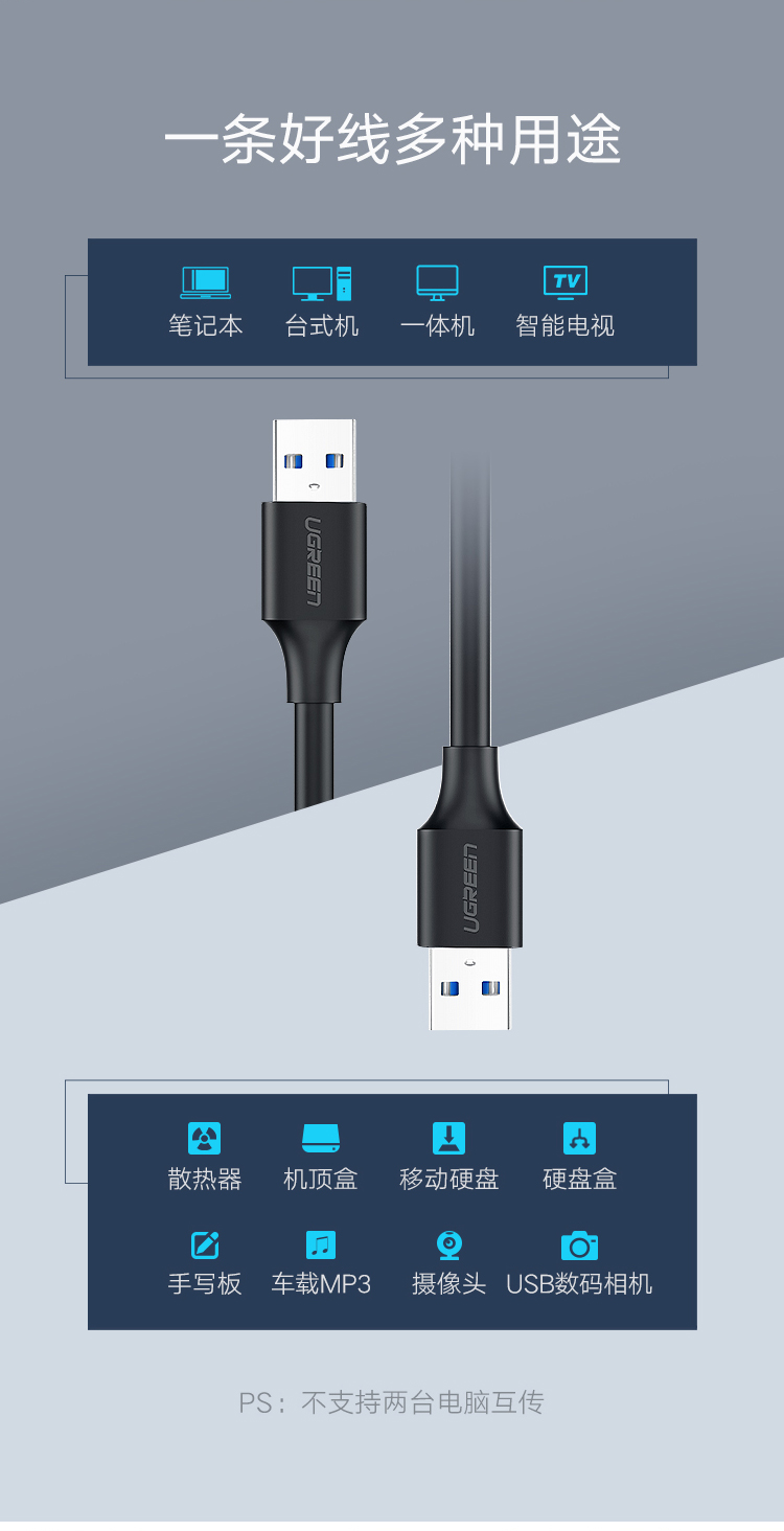 綠聯(lián) US128 USB3.0數(shù)據(jù)線公對公 雙頭移動硬盤盒高速傳輸連接線 1米 黑色 單位:根
