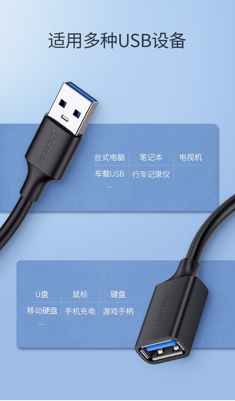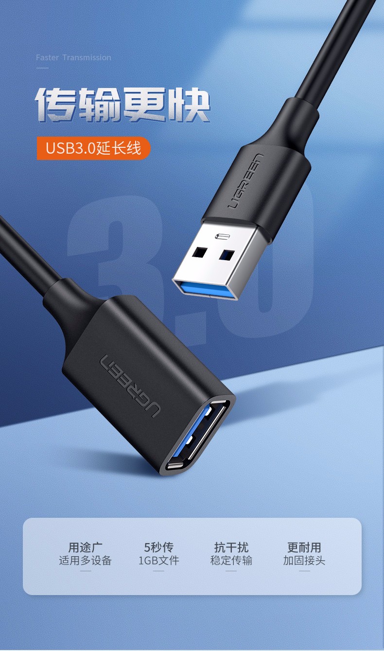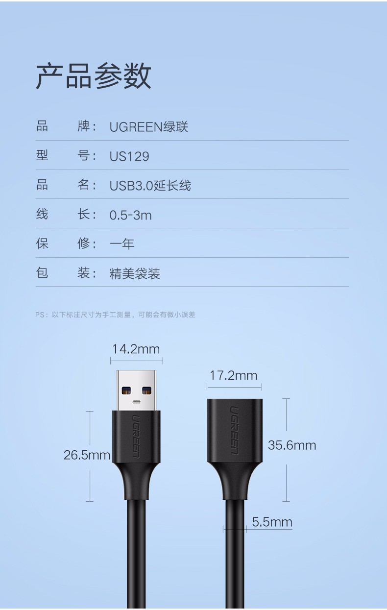 綠聯(lián) US129 USB3.0延長線公對母高速傳輸數(shù)據(jù)線 3米 經(jīng)典款 黑色 單位:根
