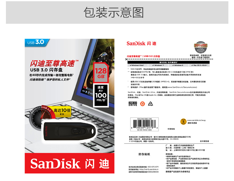 閃迪U盤 CZ48 USB3.0 64GB 單位:個