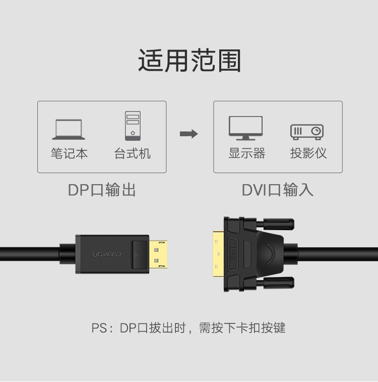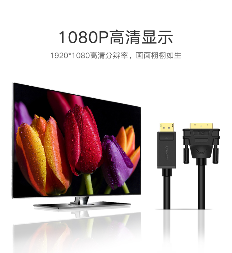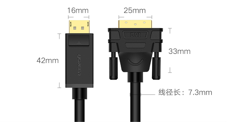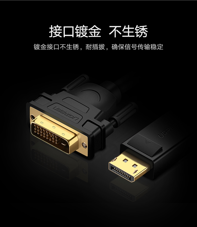 綠聯(lián) DP103 DP轉(zhuǎn)DVI轉(zhuǎn)換線 公對公高清轉(zhuǎn)接頭 電腦接顯示器投影儀連接線 2米 黑色 單個裝