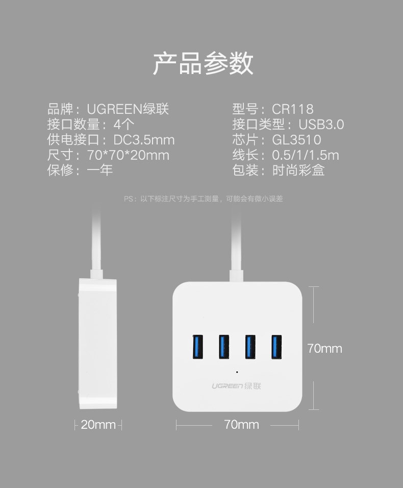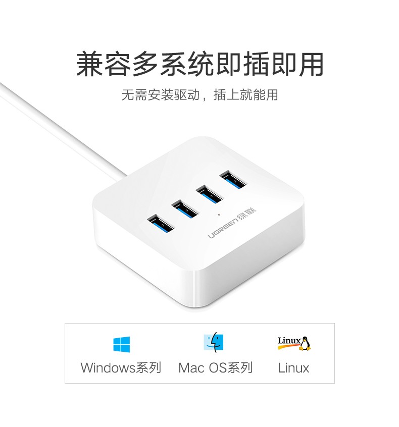 綠聯(lián)分線器 CR118 高速拓展4口3.0HUB集線器延長線 1.5米 白色 單位:個(gè)