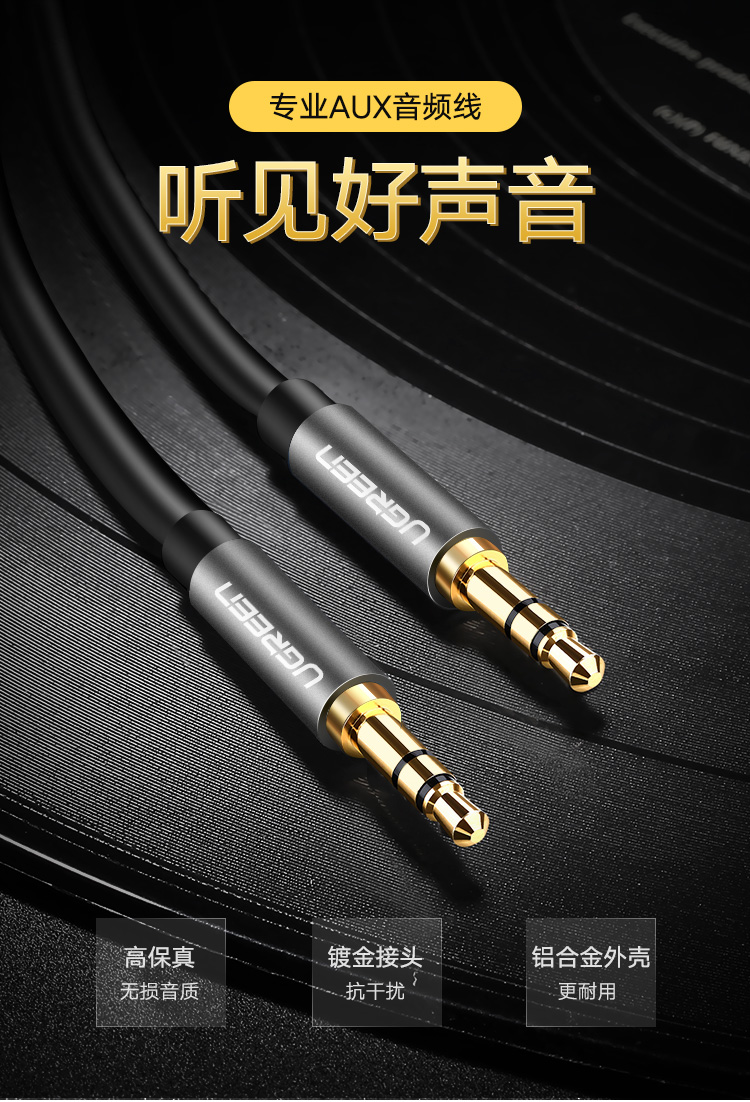 綠聯(lián) AV119 AUX車載音頻線 圓線 手機(jī)、MP3/4接音箱音頻線 黑色直頭對直頭 5米 黑色 單位:根