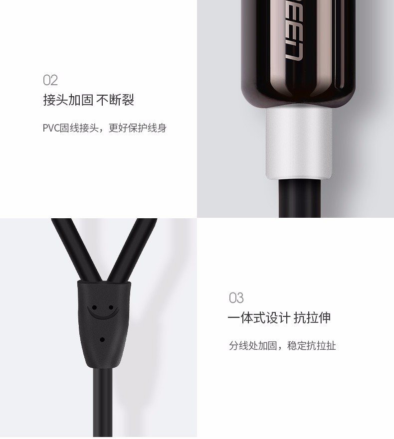 綠聯(lián) AV126 3.5mm音頻線一分二 3.5轉(zhuǎn)雙蓮花頭2RCA紅白公對公連接線 1.5米 黑色 單位:根