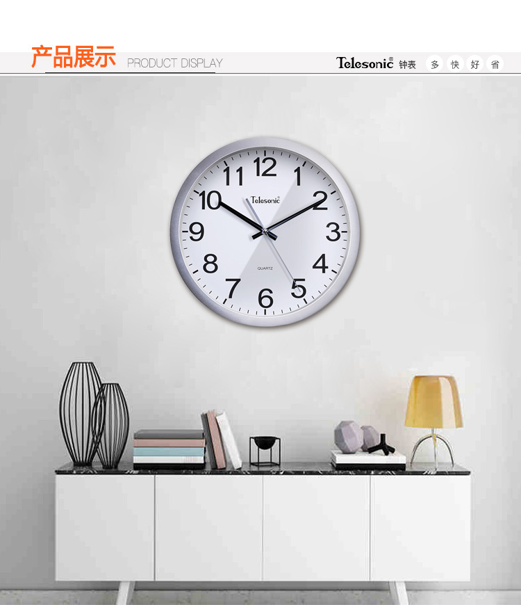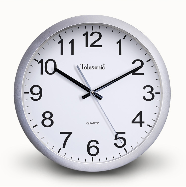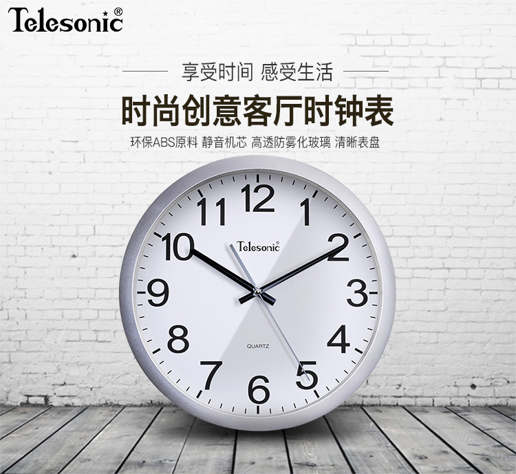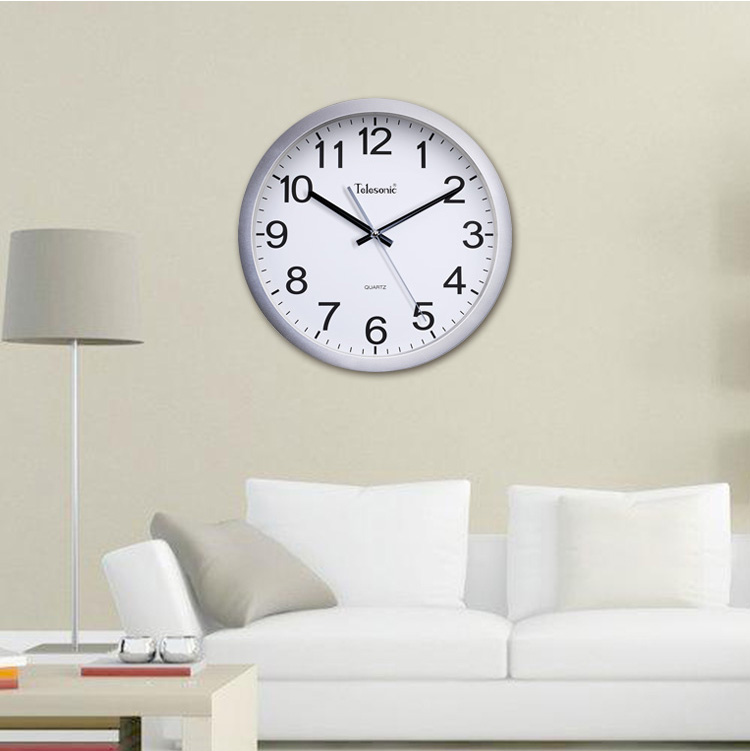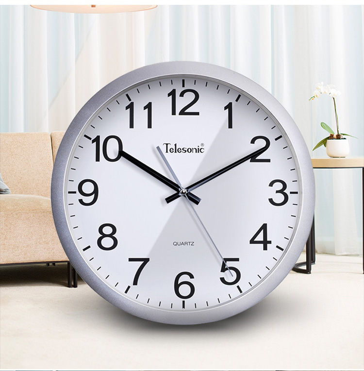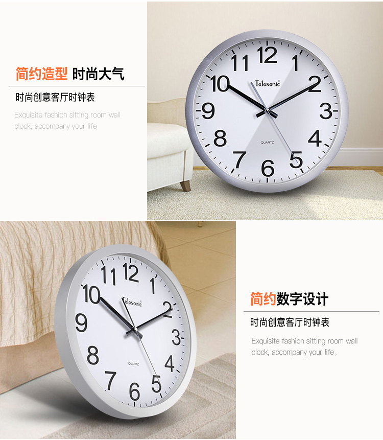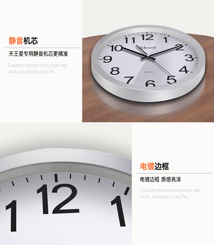 天王星 靜音時鐘創(chuàng)意簡約石英鐘14英寸 Q8622-2 銀 單位:個
