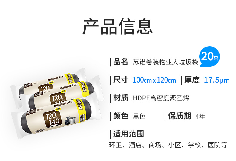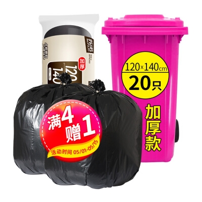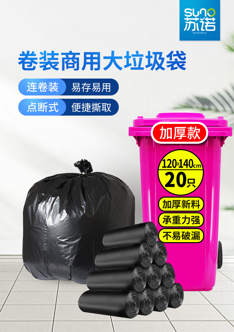 一順 120*140cm 垃圾袋大號平口加厚黑色家用廚房清潔袋桶用 垃圾分類 20只裝卷裝