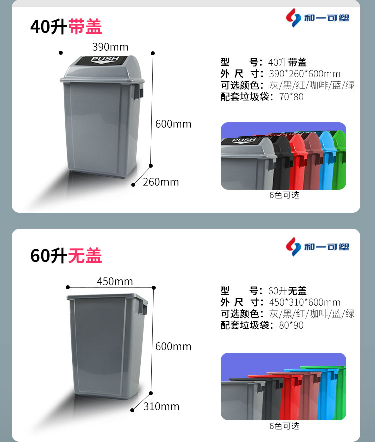 和一 60L搖蓋 藍(lán)色 垃圾桶 彈蓋酒店廚房分類垃圾筒箱戶外帶蓋204060L長方形干濕分離 單個(gè)裝