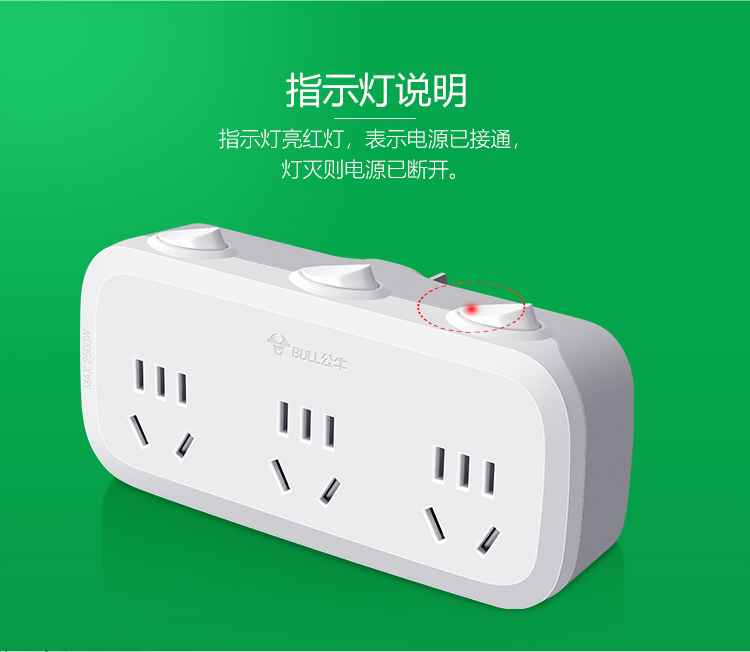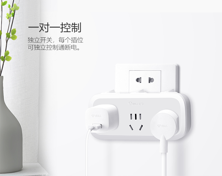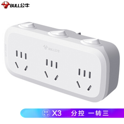 公牛轉(zhuǎn)換插頭 GN-9333 一轉(zhuǎn)三插座電源轉(zhuǎn)換器3位分控 單位:個(gè)