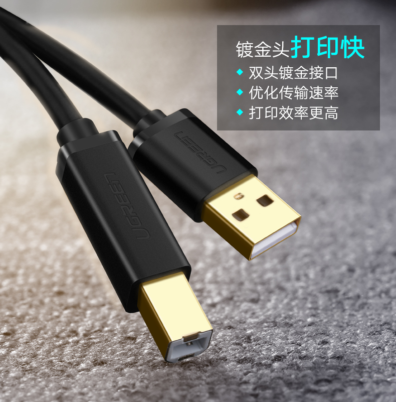 綠聯(lián) US135 USB2.0高速打印機(jī)數(shù)據(jù)線方口連接線鍍金接頭A公對(duì)B公AM/BM適用惠普HP佳能愛(ài)普生打印機(jī)生 2米 黑色 單個(gè)裝