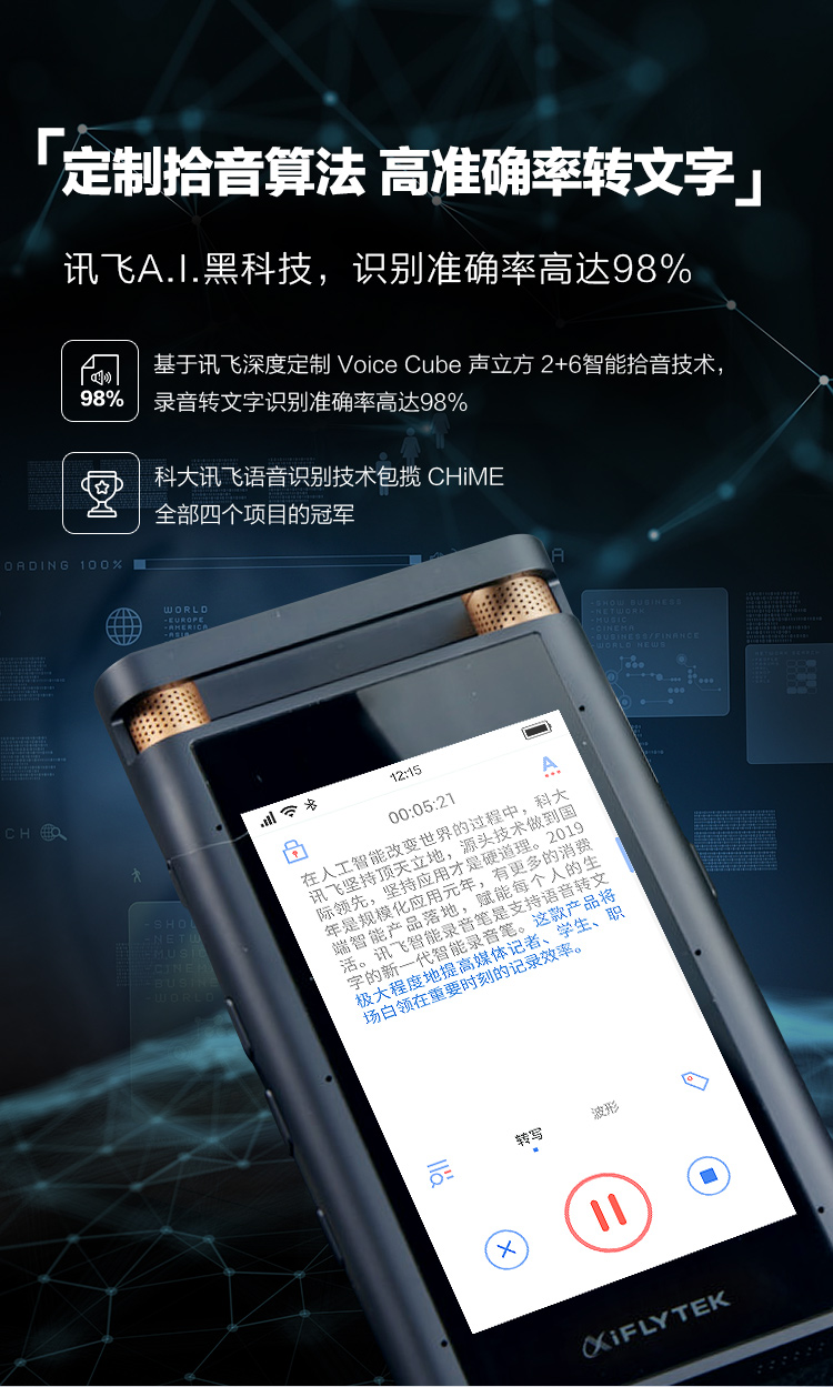 科大訊飛 SR701 智能錄音筆 實(shí)時(shí)錄音轉(zhuǎn)文字中英翻譯 高清降噪觸屏遠(yuǎn)場(chǎng)錄音設(shè)備 32G+云存儲(chǔ) 金色