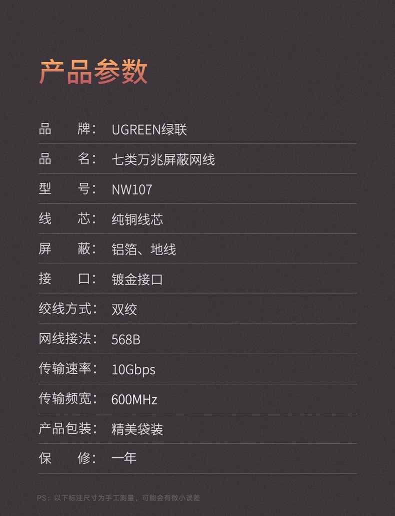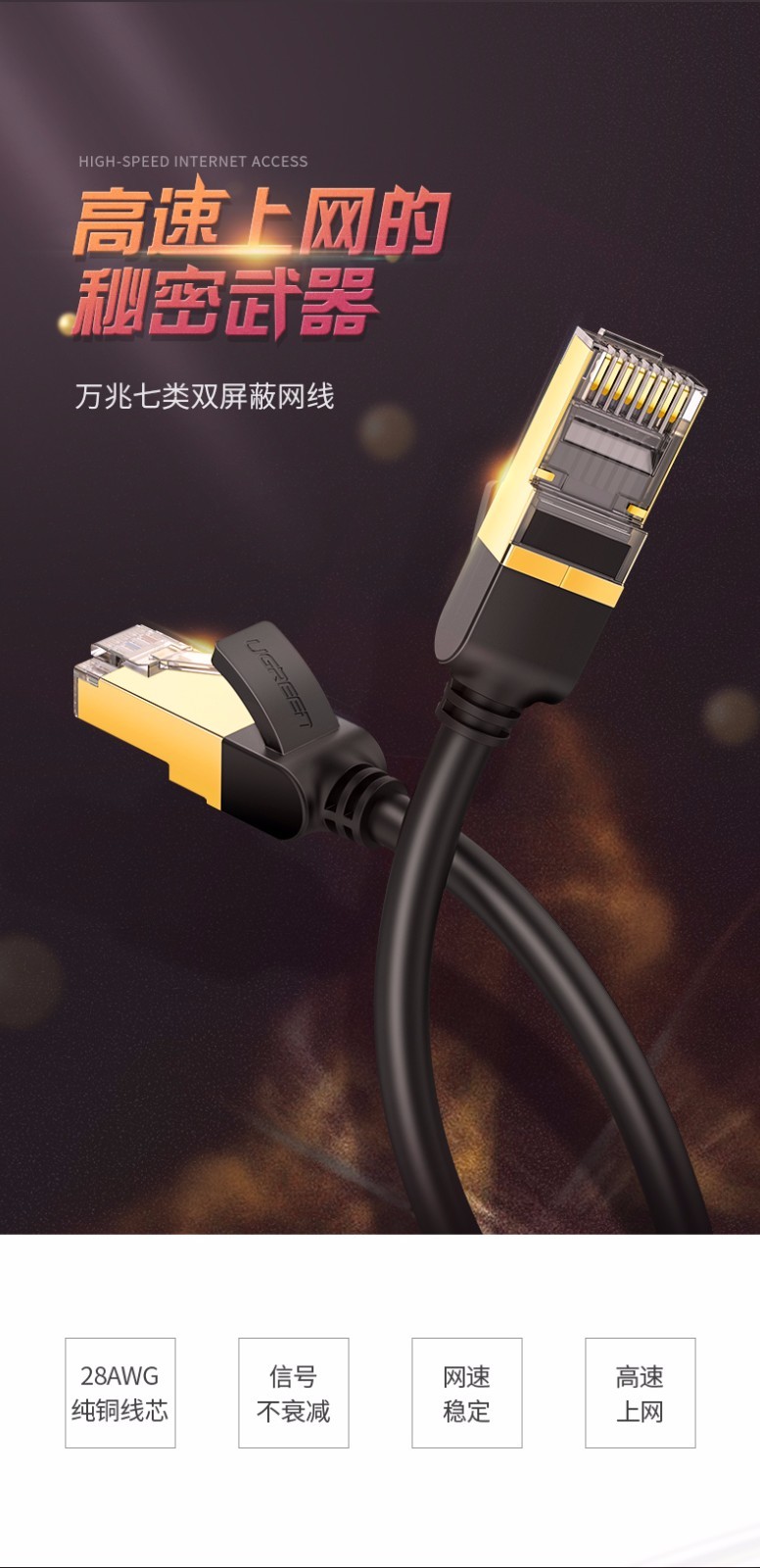 綠聯(lián) NW107 七類網(wǎng)線 工程級(jí)CAT7類八芯雙絞純銅鍍金雙屏蔽高速萬兆網(wǎng)絡(luò)跳線 電腦家用寬帶成品監(jiān)控連接線 七類圓形全銅網(wǎng)線 3米 黑色 單個(gè)裝
