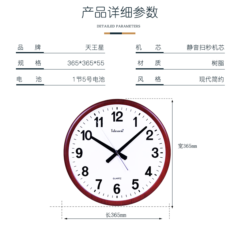天王星時鐘客廳臥室靜音掛鐘創(chuàng)意時尚簡約石英鐘璧鐘表 332W