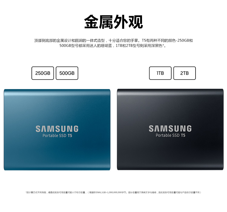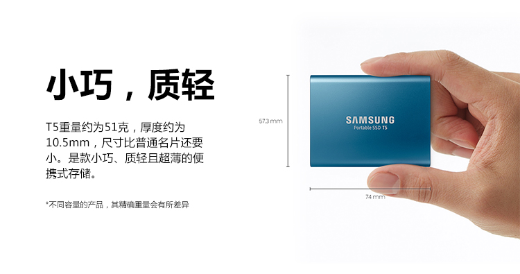 三星(SAMSUNG) 250GB Type-c USB3.1 移動硬盤 固態(tài)(PSSD)T5 珊瑚藍(lán) 傳輸速度可達(dá)540MB/s 安全便攜