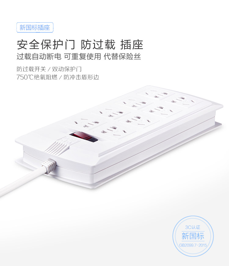 突破(TOP) D1K8 插座插排插線板多功能開關/兒童保護愛國者接線板拖線板辦公家用 8位1.8米