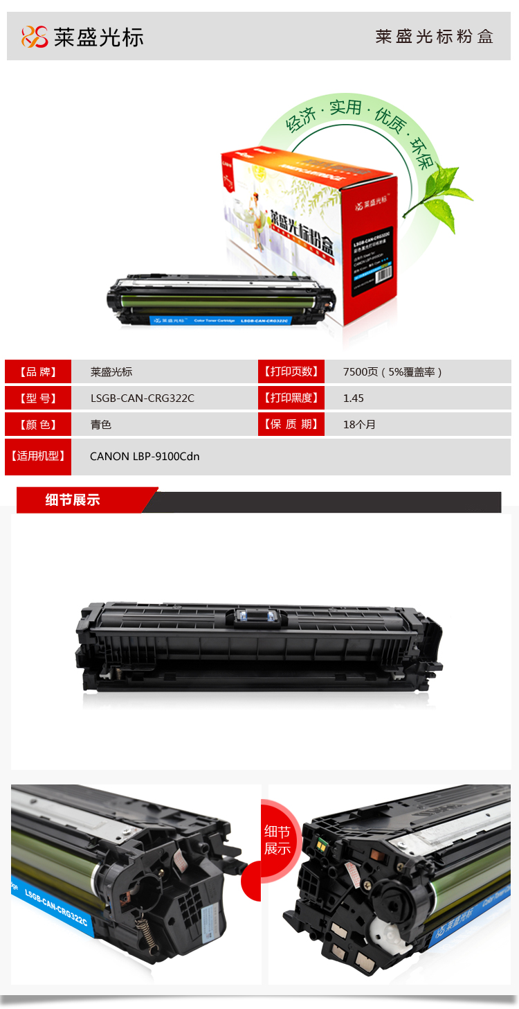 萊盛光標(biāo) LSGB-CAN-CRG322C 青色硒鼓 適用于CANON LBP-9100Cdn