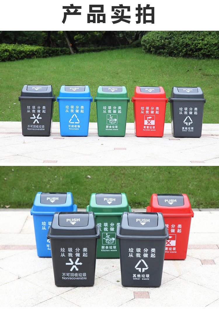 樸廚(PUCHU)40L搖蓋 藍色 可回收垃圾分類垃圾桶帶蓋 飯店餐飲可回收廚余環(huán)衛(wèi)有害戶外四分類 單個裝