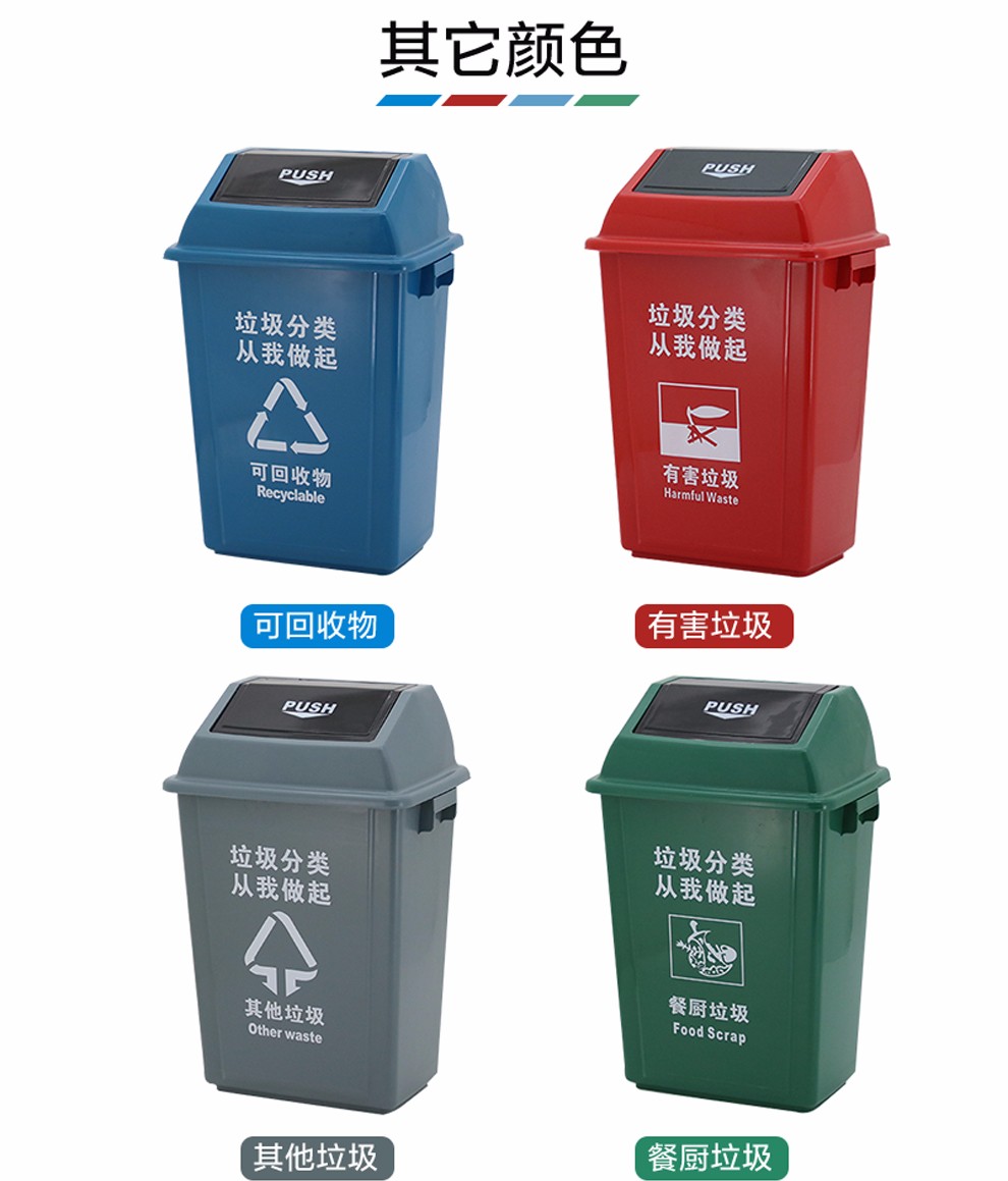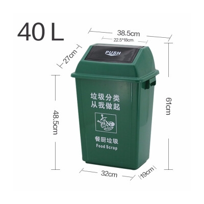 科靈 40L搖蓋 綠色 廚余垃圾分類垃圾桶帶蓋 飯店餐飲可回收廚余環(huán)衛(wèi)有害戶外四分類 單個裝