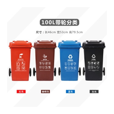 樸廚(PUCHU)100L帶輪 藍色 可回收垃圾分類垃圾桶大號帶蓋 飯店餐飲可回收廚余環(huán)衛(wèi)有害戶外四色 單個裝