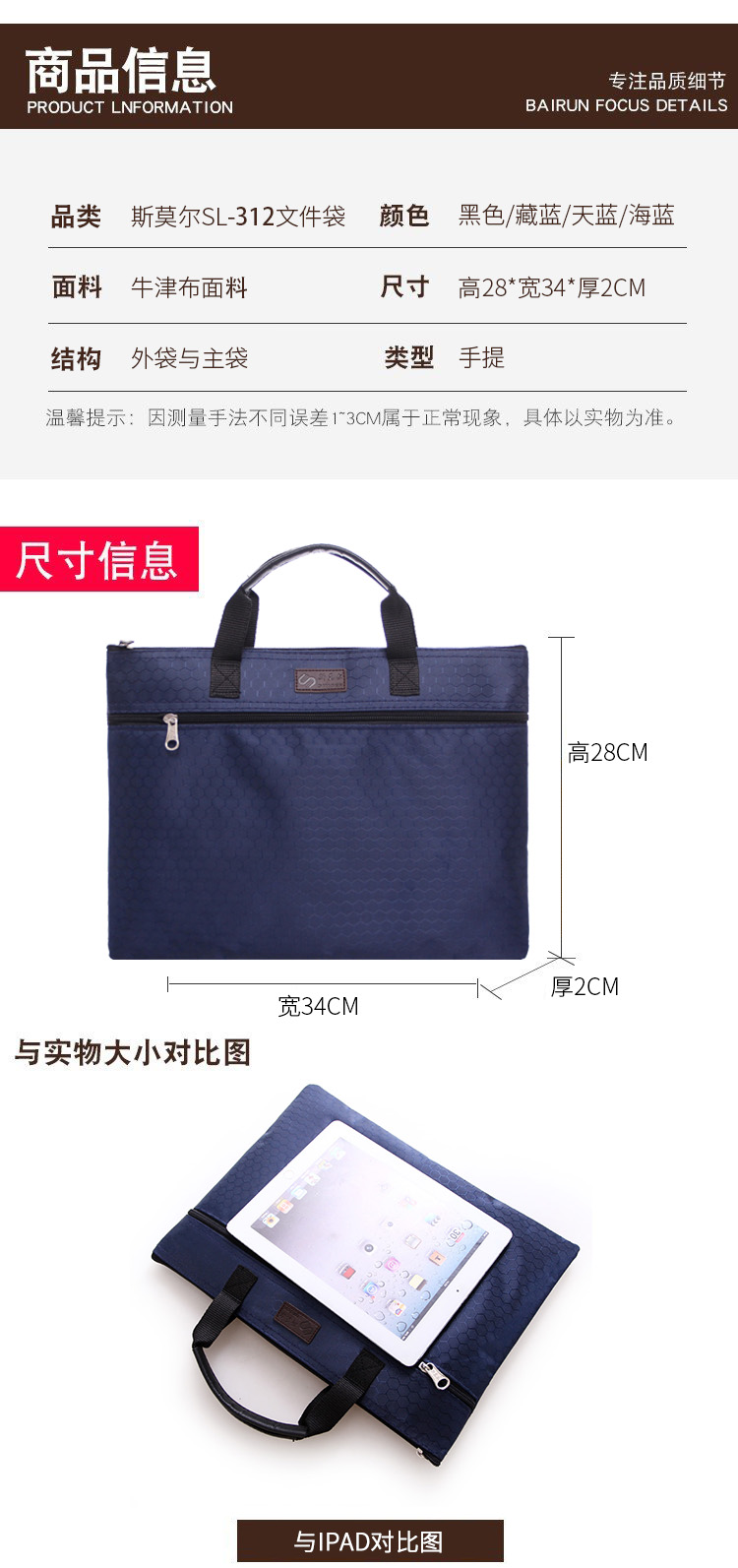 斯莫爾手提袋 SL-312 電腦包雙層文件袋會議包公文袋 藏藍(lán)色 單位:個