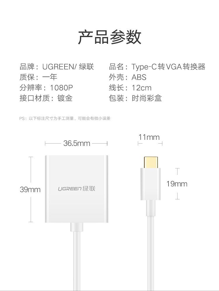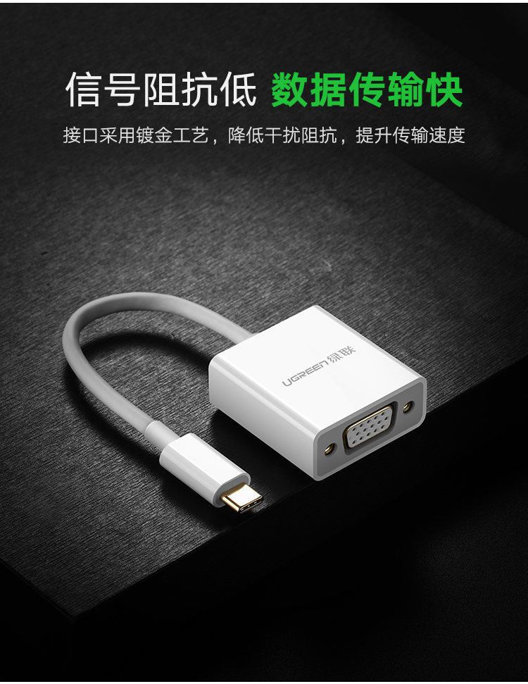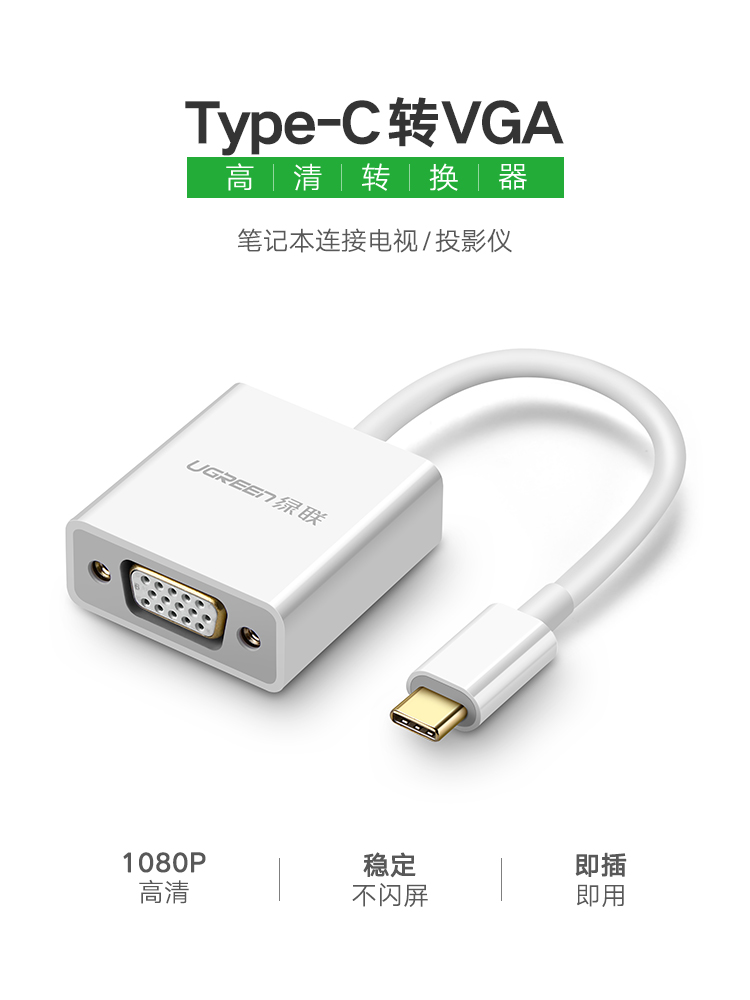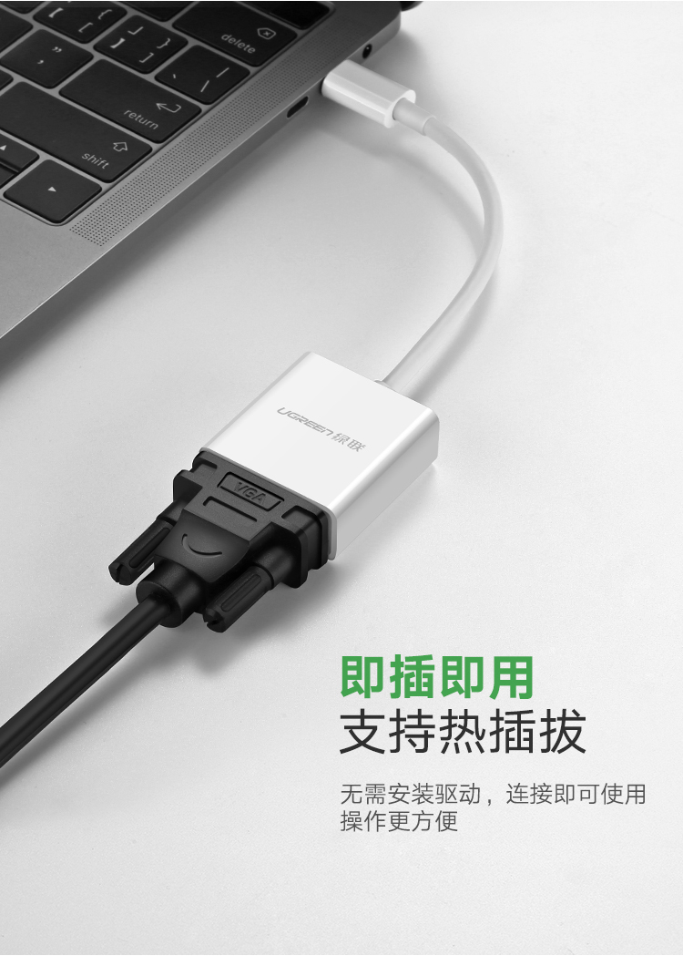 綠聯(lián) CM140 Type-C轉(zhuǎn)VGA轉(zhuǎn)換器擴(kuò)展塢 通用P30手機(jī)iPad Pro蘋果MacBook USB-C轉(zhuǎn)換器數(shù)據(jù)線轉(zhuǎn)接頭分線器 投屏拓展塢 黑色 單個裝