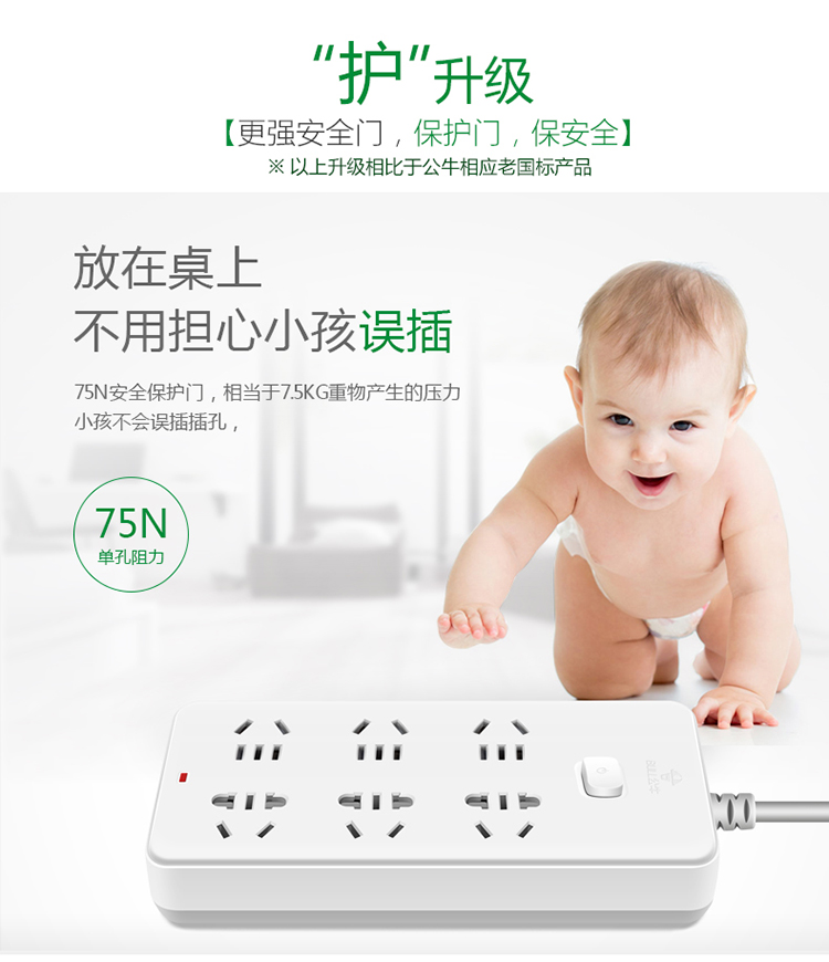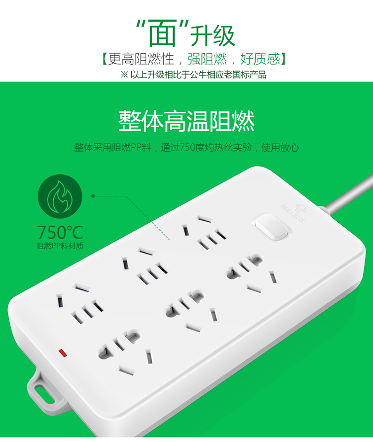 公牛(BULL) GN-109K 新國標(biāo)插座/插線板/插排/排插/接線板/拖線板 6位總控全長 6位5米