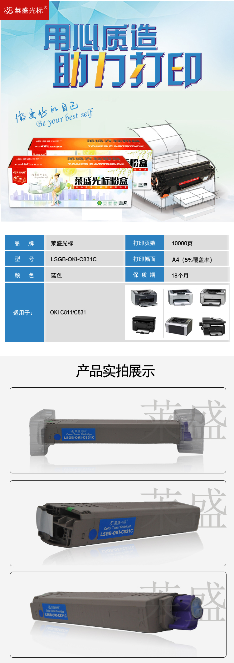 萊盛光標(biāo)硒鼓 LSGB-OKI-C831C 青色 單位:支