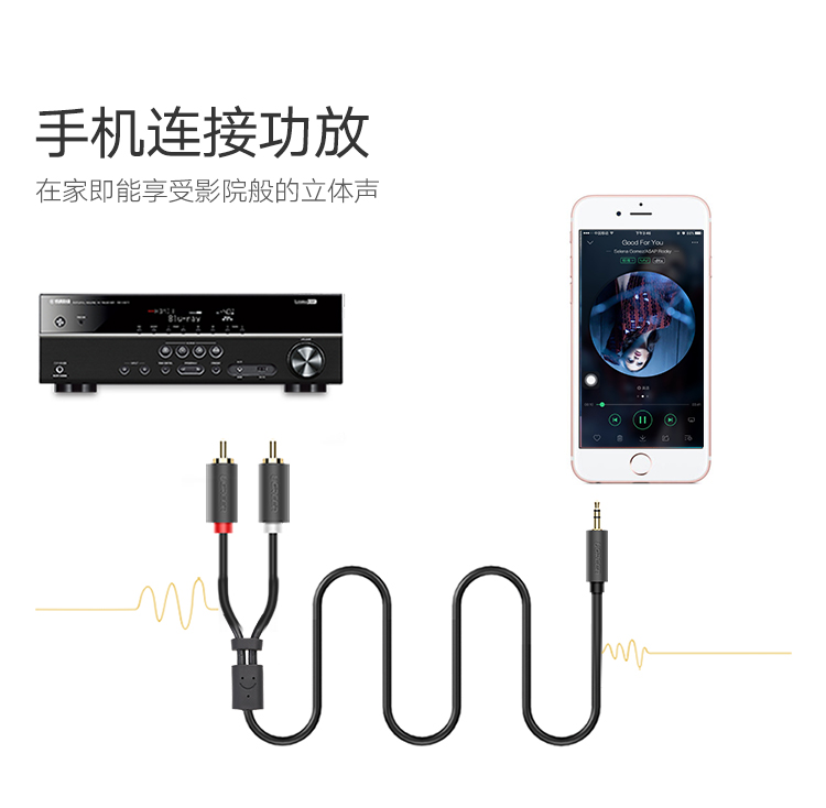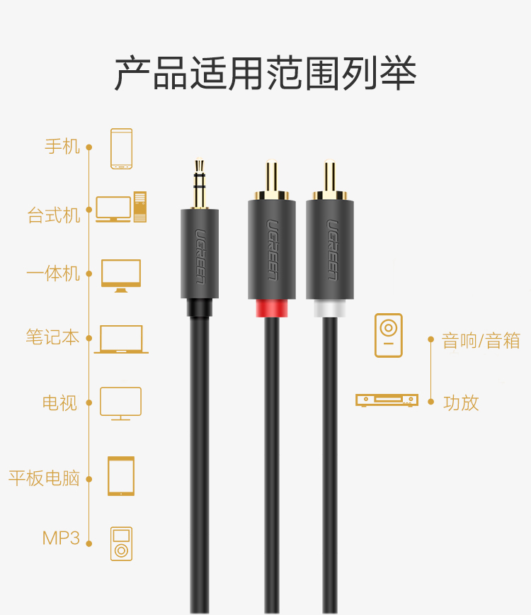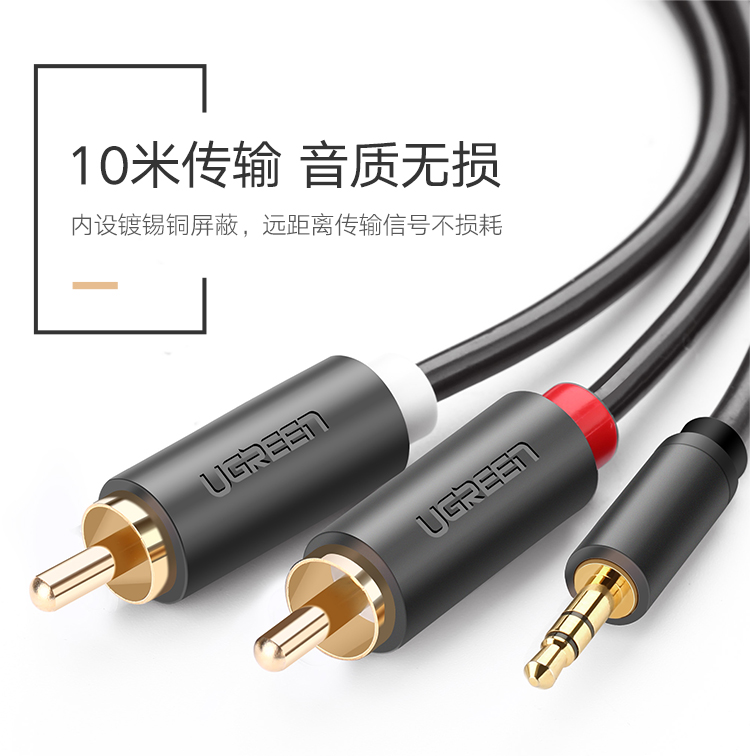 綠聯(lián) AV102 3.5mm公轉(zhuǎn)2RCA公音頻線1米 黑色 單位:根