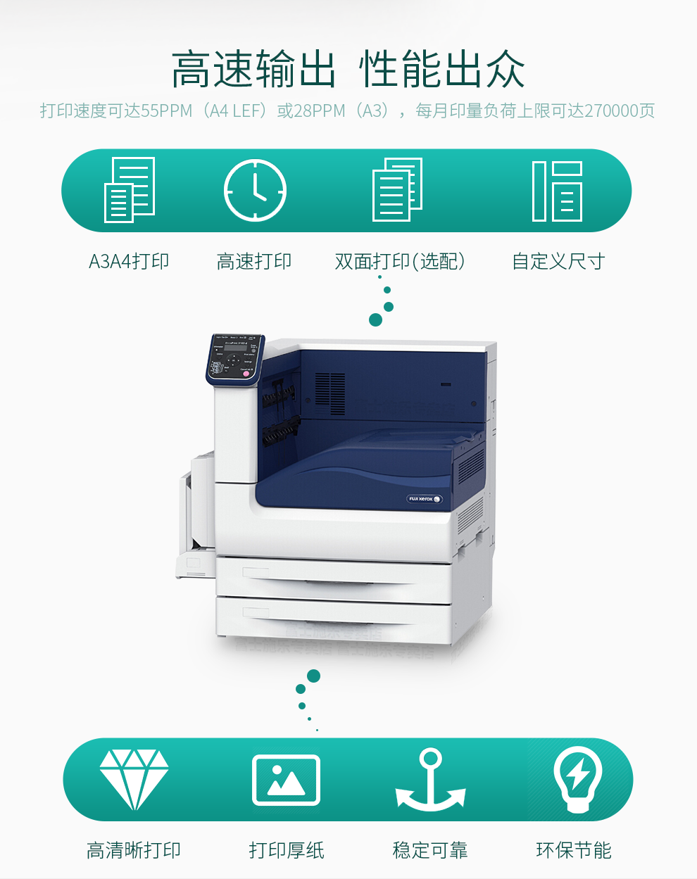 A3高速黑白打印,55PPM,首頁輸出2.7秒,1200X1200dpi, 2GB內(nèi)存,標配網(wǎng)絡(luò)打印,標配雙面打印 預(yù)定