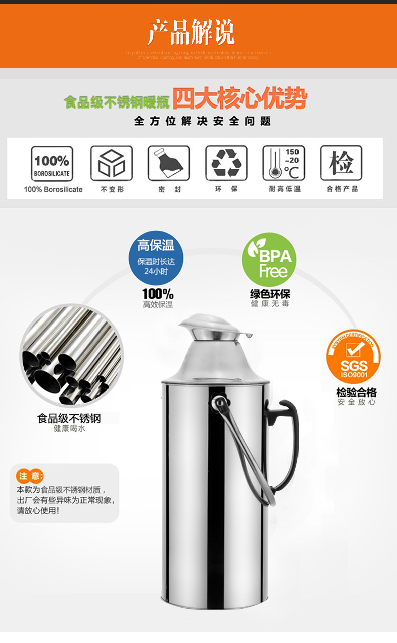 鹿牌暖瓶 0364 不銹鋼暖瓶玻璃內(nèi)膽 5p 單位:個(gè)