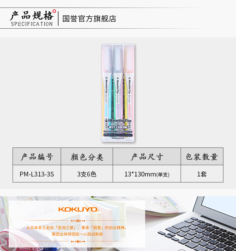 國譽熒光筆 PM-L313-3S 單位:3支/套