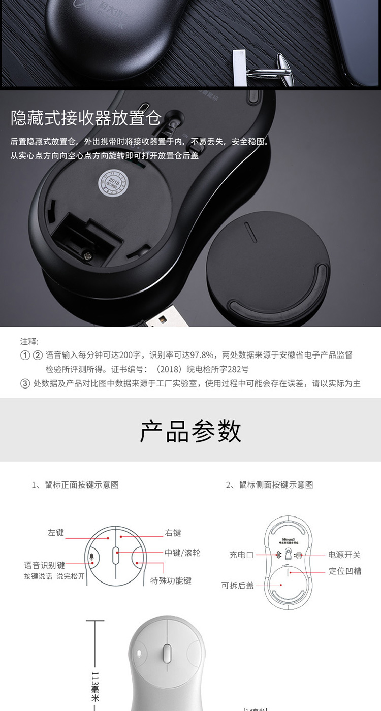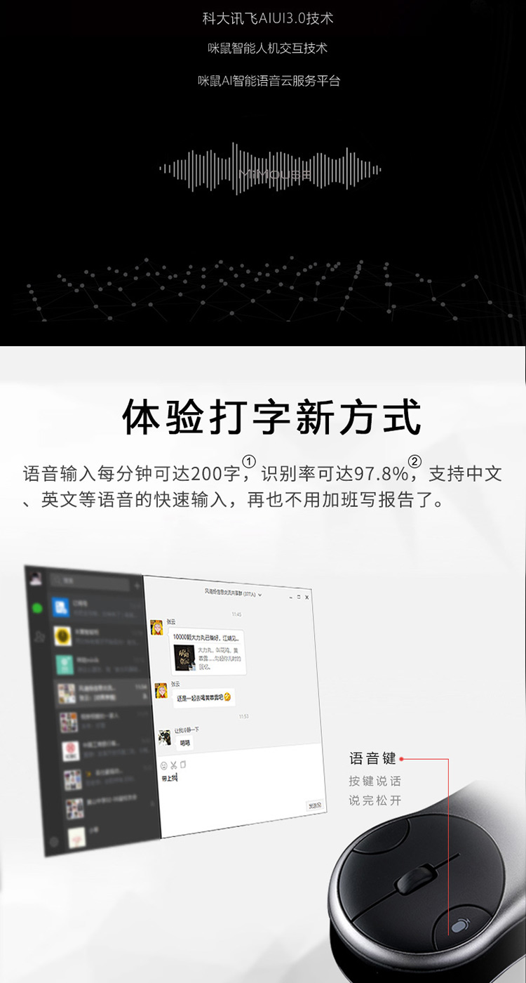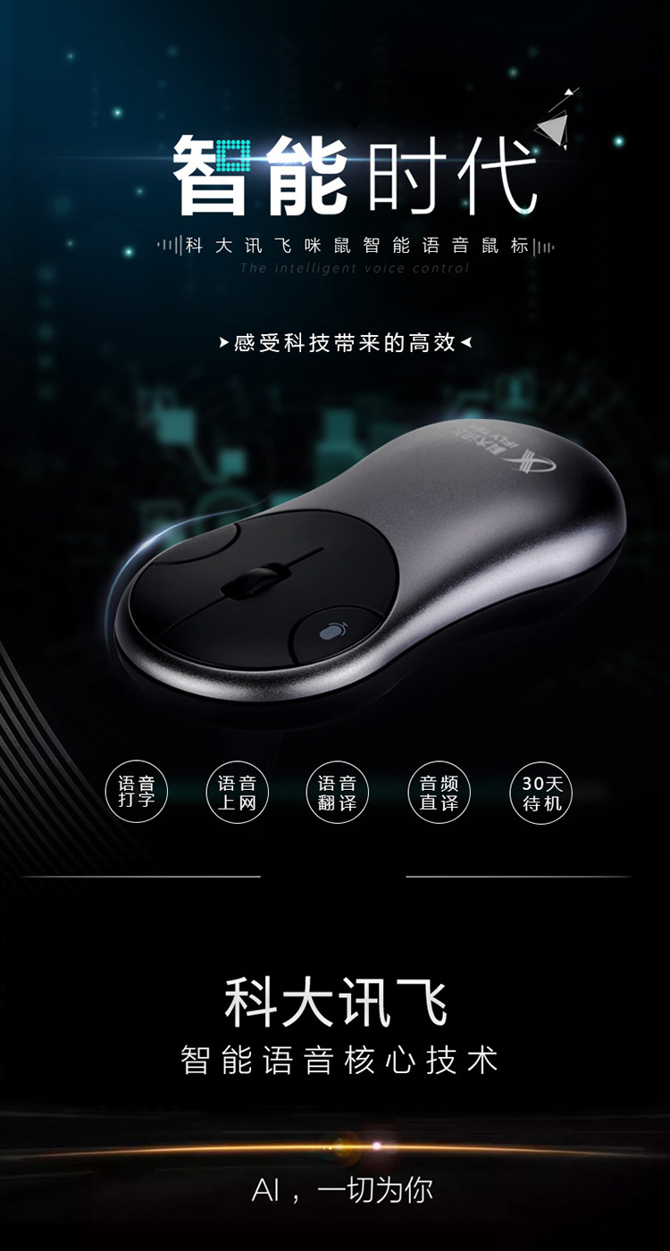 科大訊飛鼠標(biāo) 咪鼠智能語音鼠標(biāo) 黑色 單位:個(gè)