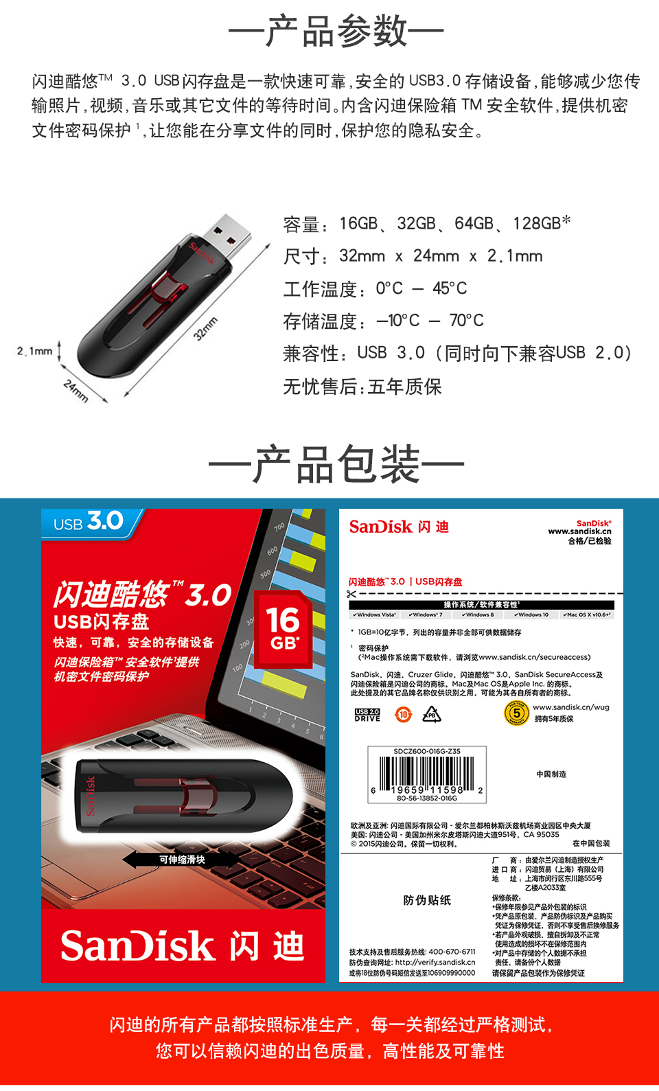 閃迪U盤 CZ600 32g USB3.0 單位:個