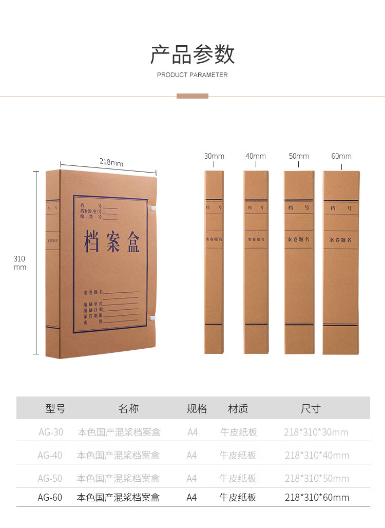 齊心牛皮紙檔案盒 40mm AG-40 單位:10個裝/包