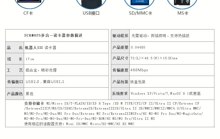 飚王讀卡器 SCRM025迷你鋁合金讀卡器 單位:個(gè)