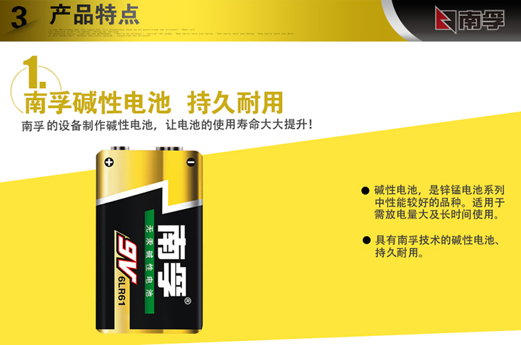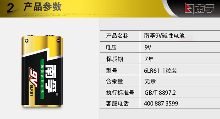 南孚電池 9V堿性電池1粒裝 單位:卡