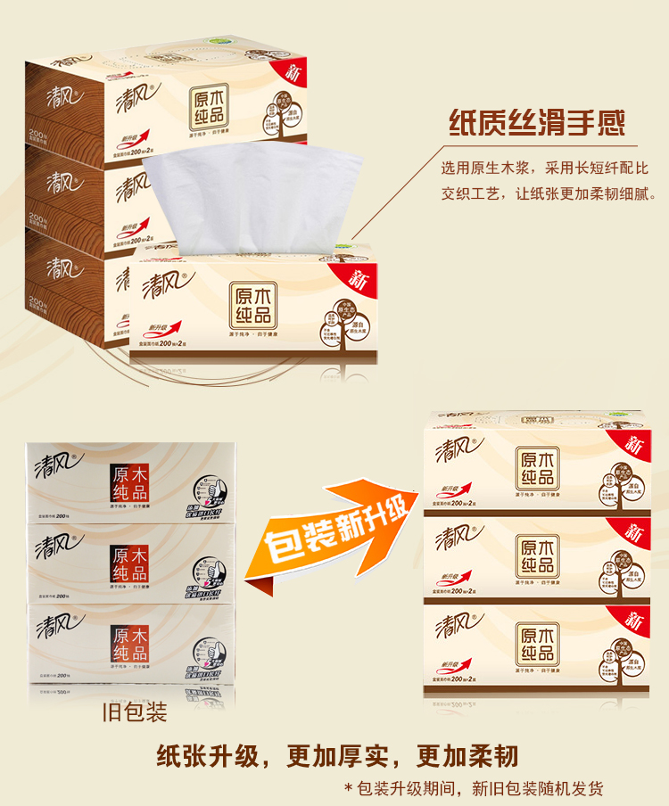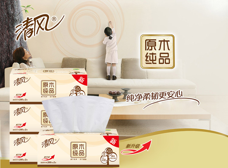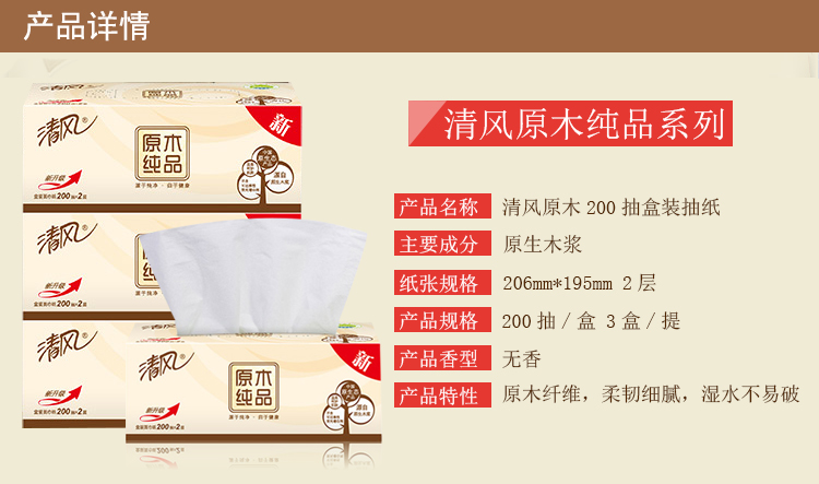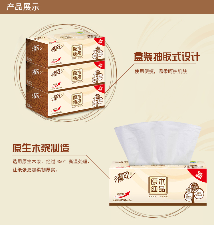 清風抽紙 原木純品2層200抽盒裝面巾紙 單位:盒