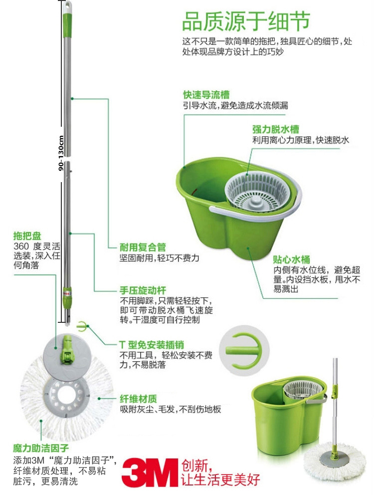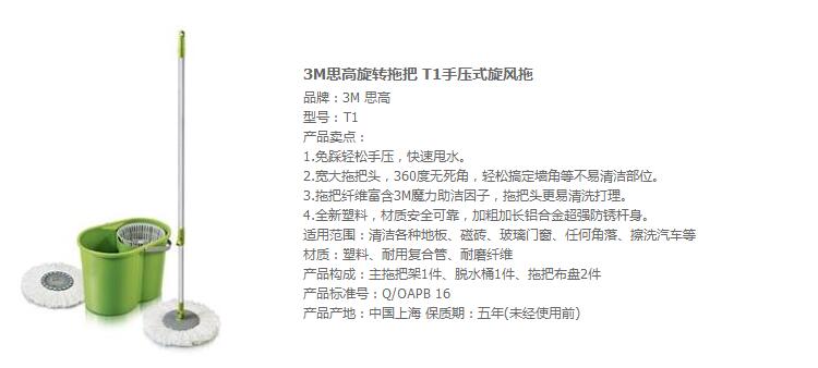 3M思高 T1旋轉(zhuǎn)拖把 手壓式旋風(fēng)拖內(nèi)含兩圓拖 單位:套