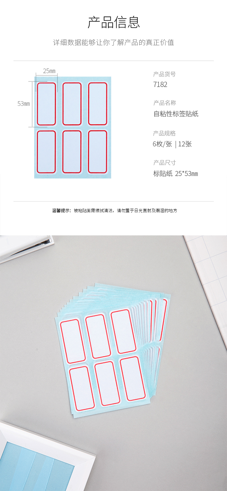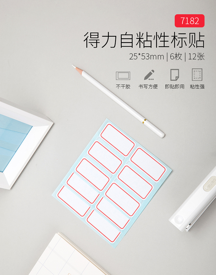 得力 7182 25×53mm不干膠標簽貼紙自粘性標貼姓名貼 單位:72枚/包