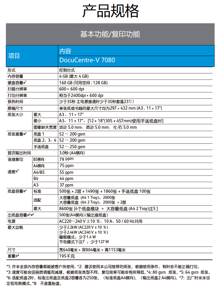 富士施樂復(fù)印機(jī) DC-V 7080 基本配 激光復(fù)合復(fù)印機(jī) 單位:臺